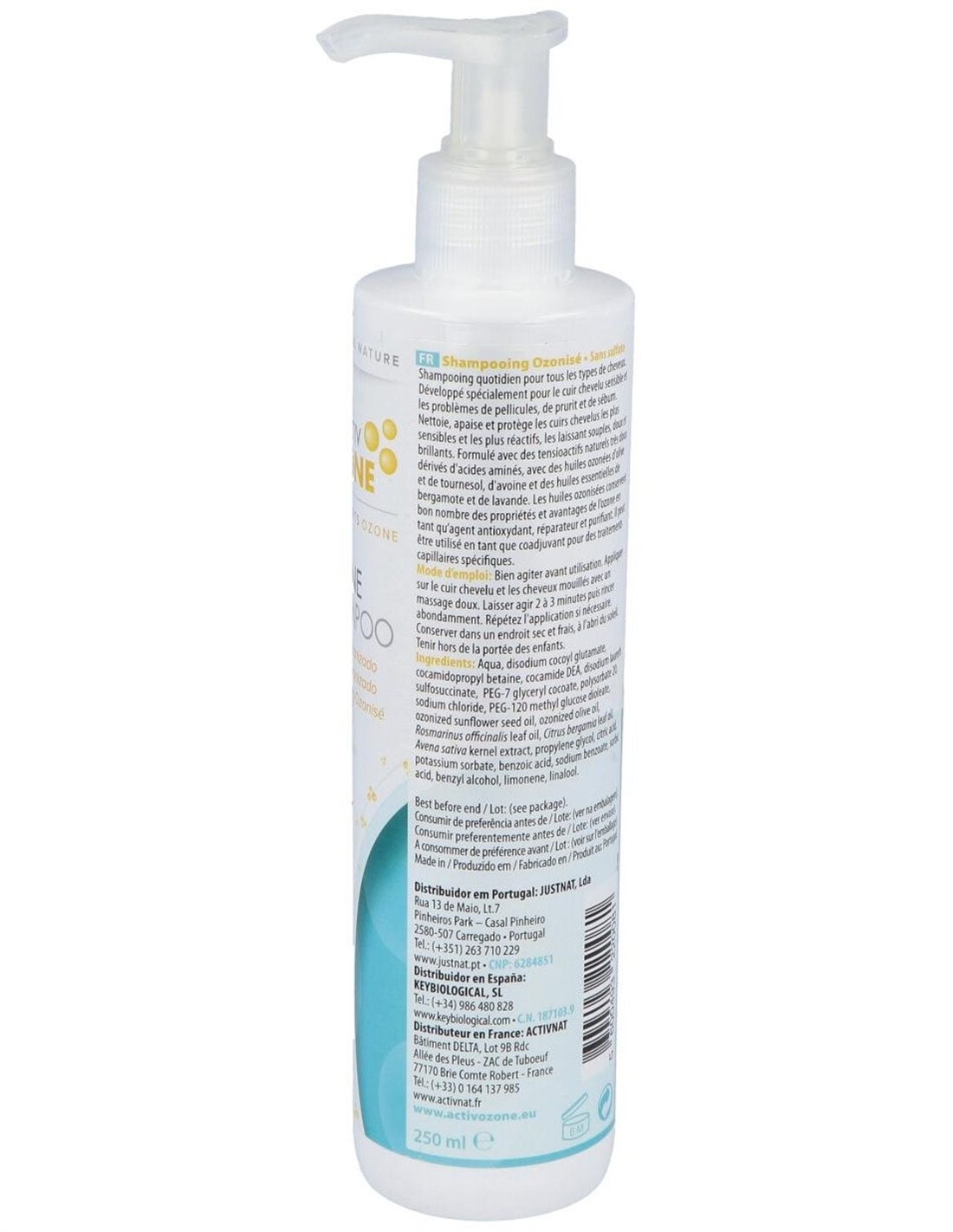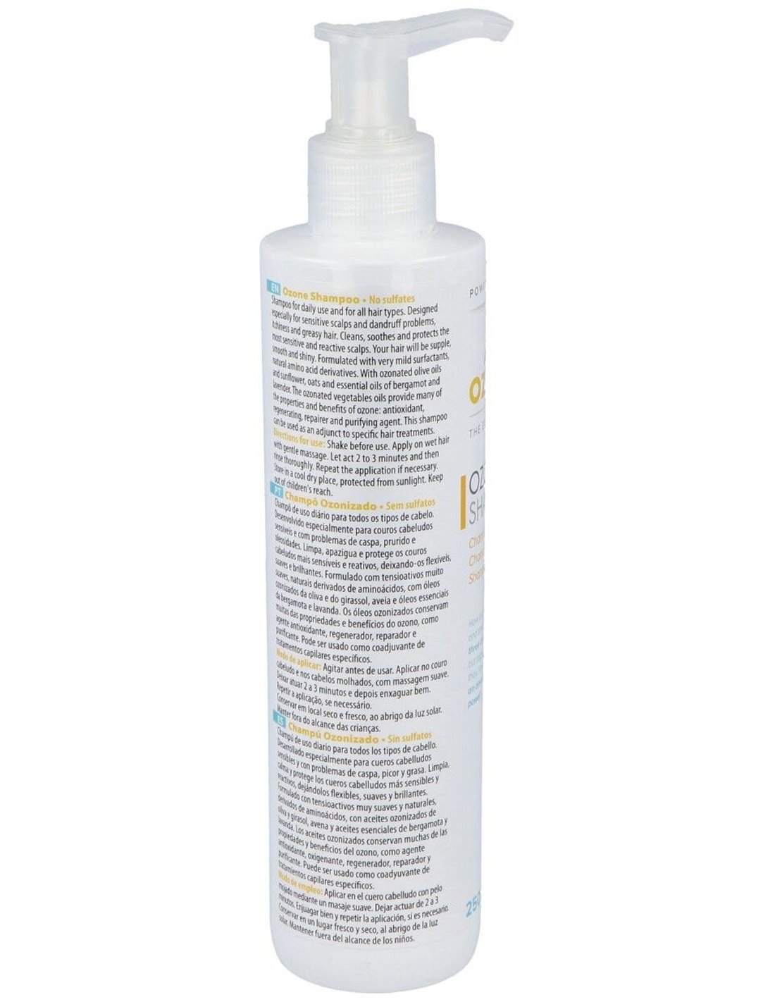 ACTIVOZONEActiv Ozone Champú contiene en su formulación un equilibrado porcentaje de aceites ozonizados que conservan muchas de las propiedades y beneficios del