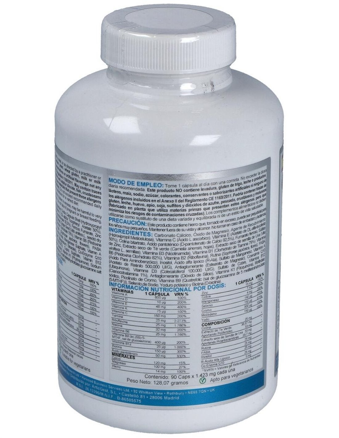 Multinutriente para adultos, dirigido a aquellas personas en edad adulta que quieran mejorar sus niveles de energía puesto que aporta una significativa cantidad de vitamina B5 que mantiene equilibrado el metabolismo energético, mejora el rendimiento intelectual, y reduce los síntomas de cansancio y debilidad. Apto para vegetarianos.