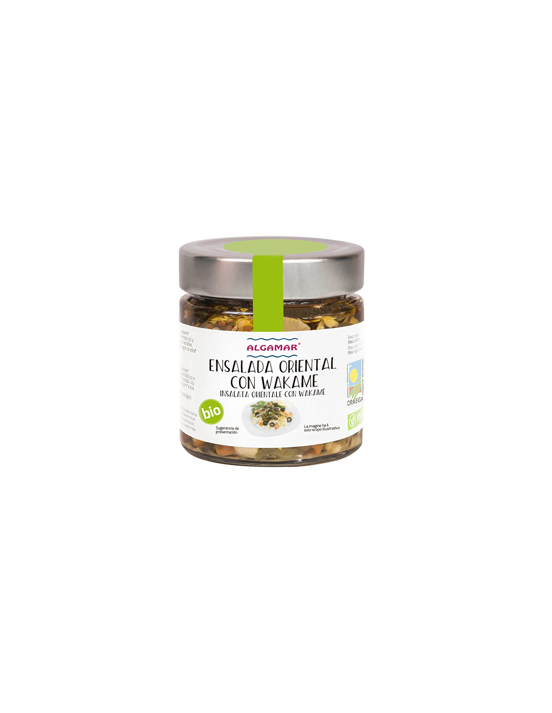 ALGAMAREnsalada oriental con Wakame para consumir algas en la alimentación diaria, ya que es ideal como guarnición o acompañante de recetas. Lista para comer: como guarnición y acompañante para ensaladas, bocadillos, tostadas, verduras, patatas, pasta, arroz, tofu, seitán, etc.