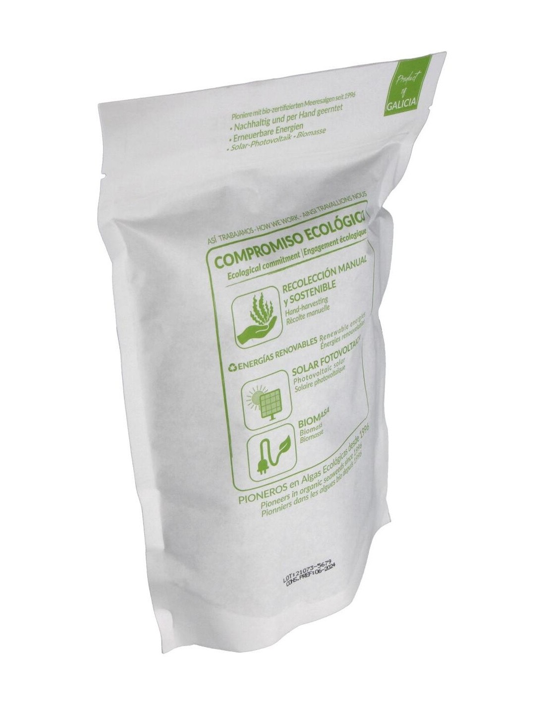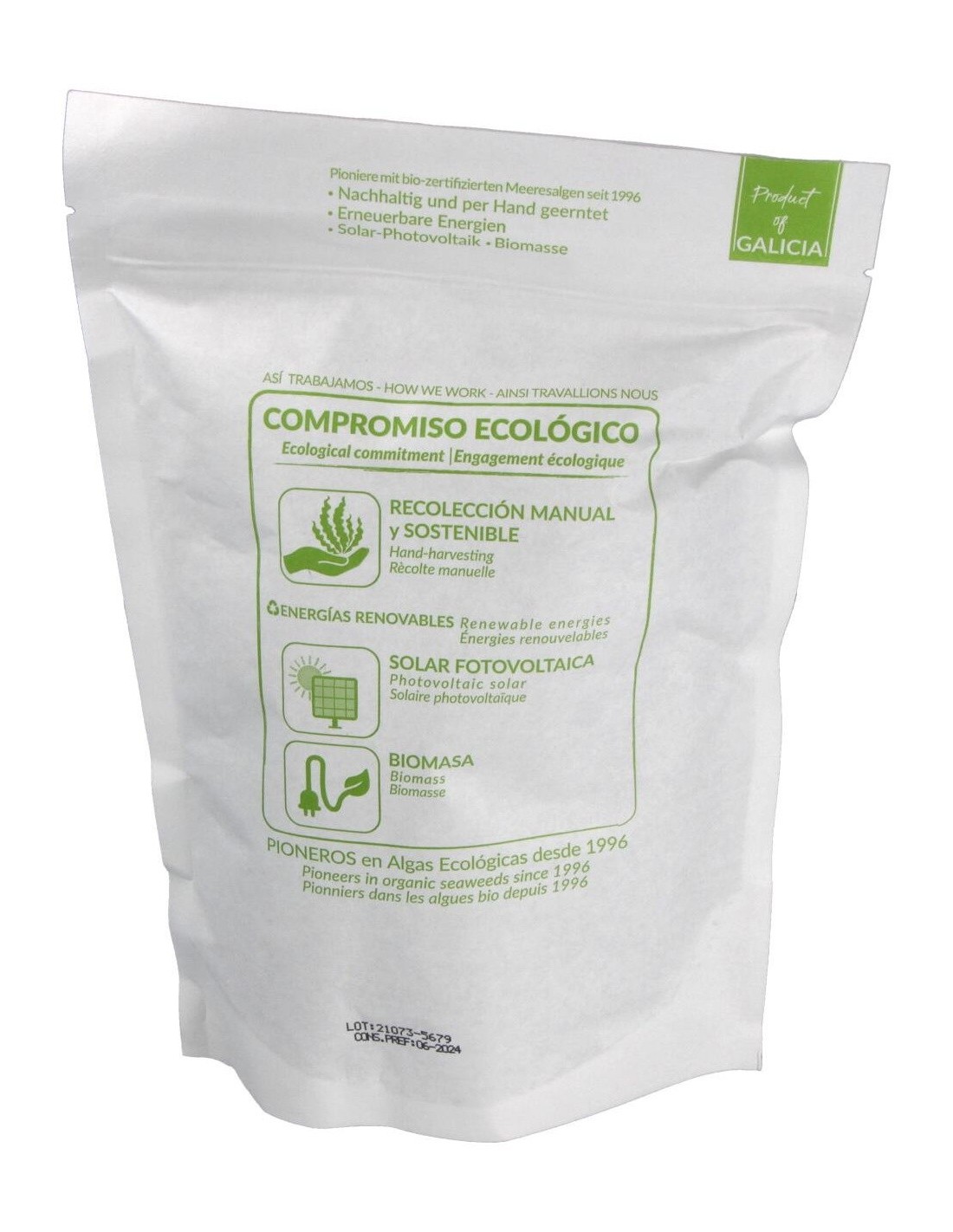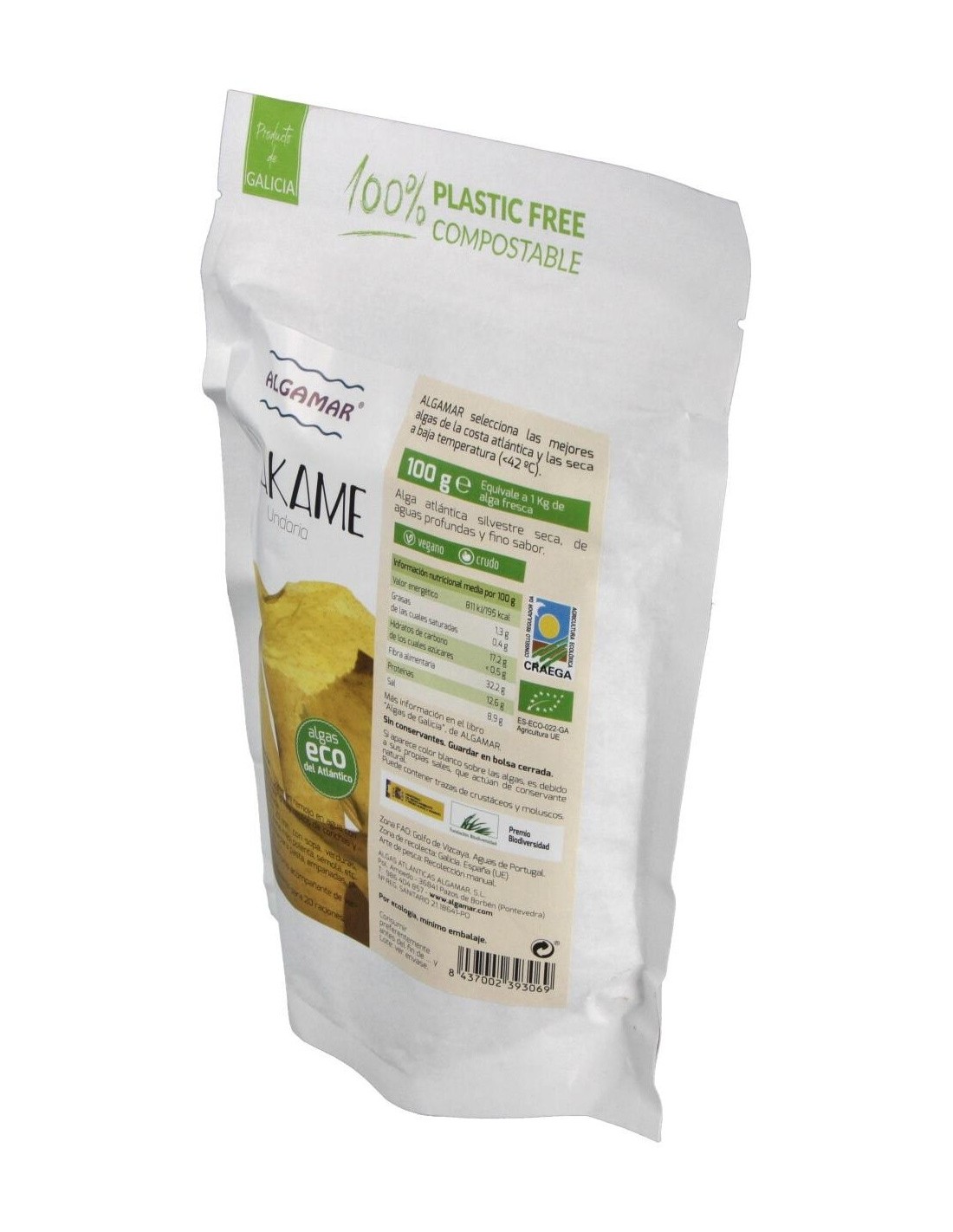 El Alga Wakame de Algamar se presenta en un formato que conserva sus propiedades originales, garantizando frescura y calidad. Su diseño y presentación facilitan su almacenamiento y uso en el hogar, adaptándose a diferentes estilos de cocina.
