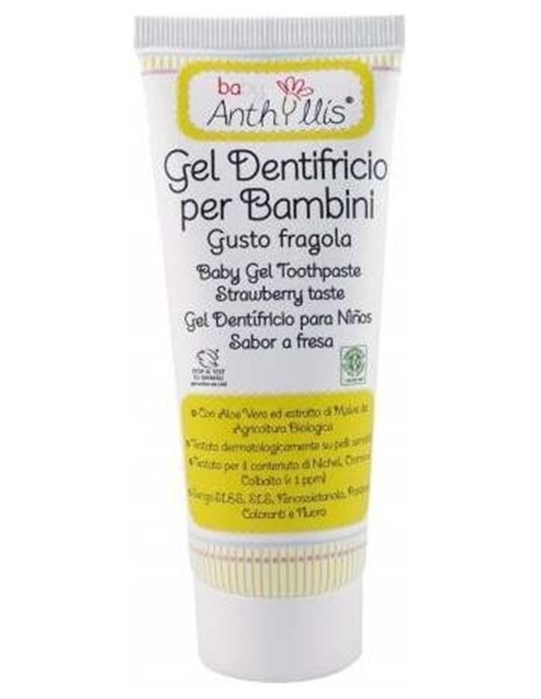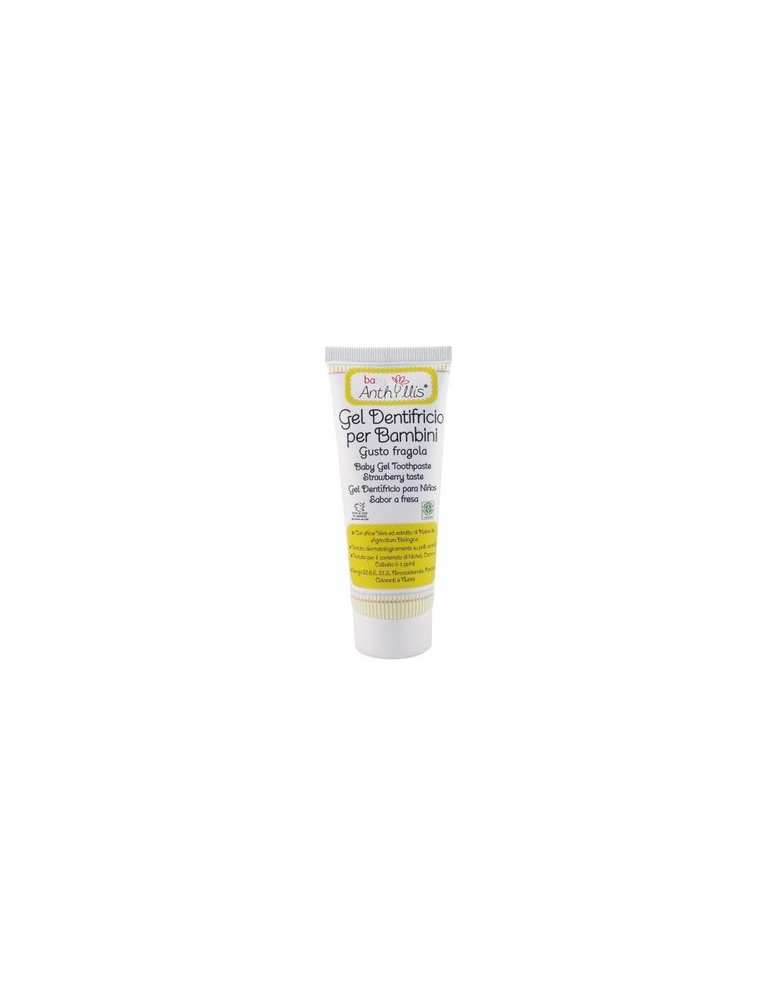 ANTHYLLISGel dentífrico para niños, apto a partir de los primeros dientes, con delicado sabor de fresa. Su bajo nivel de abrasión garantiza su seguridad para la limpieza de los dientes de leche.