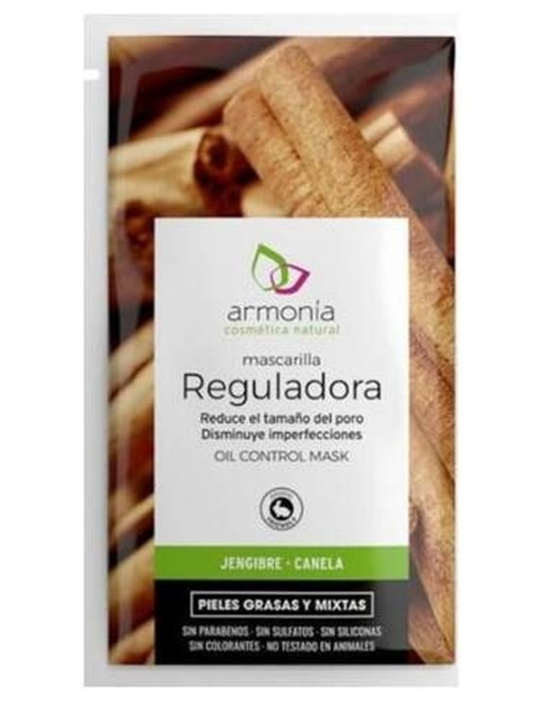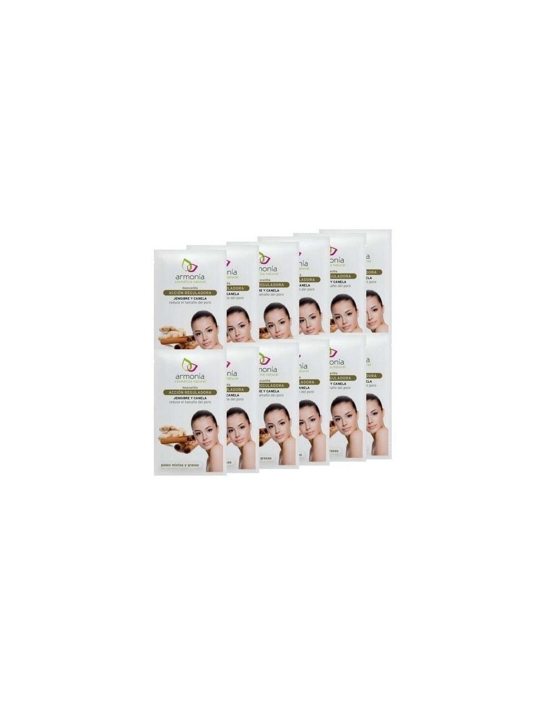 ARMONIALa Mascarilla Reguladora Jengibre-Canela Exp 12Sbrs de Armonia es un tratamiento facial para personas con piel mixta o grasa. Ayuda a equilibrar la piel gracias a su fórmula con extractos naturales de jengibre y canela.
