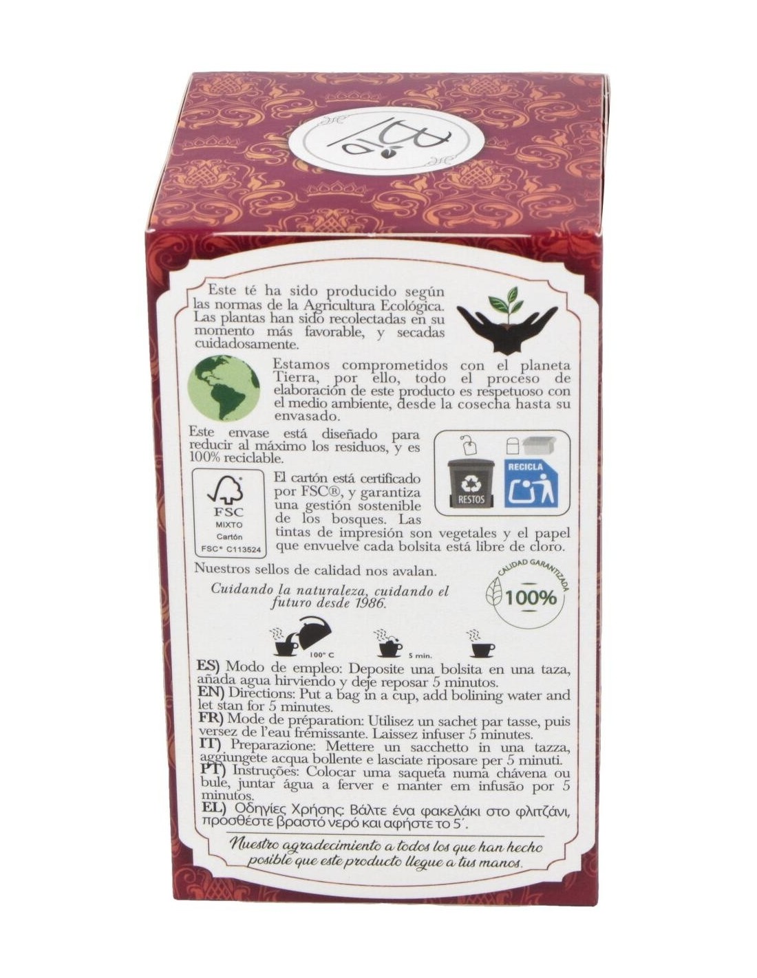 Este producto ofrece una opción de infusión con características tradicionales y certificación ecológica, pensada para quienes buscan una experiencia natural y práctica en su consumo diario.