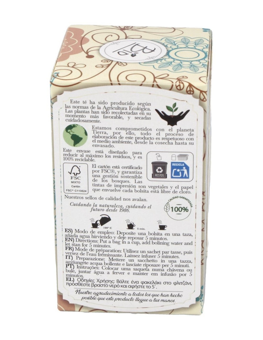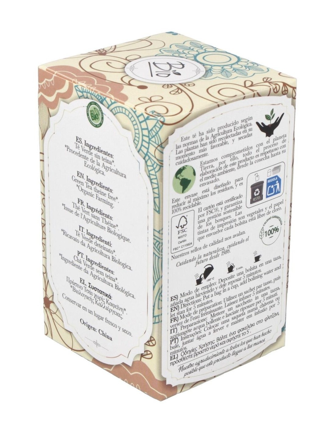 - Elaborado con hojas de té verde cultivadas de forma orgánica, garantizando una infusión limpia y libre de aditivos químicos.