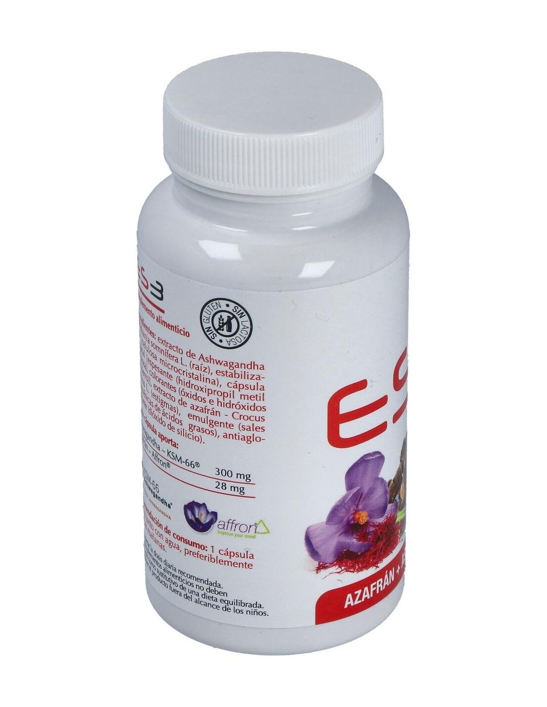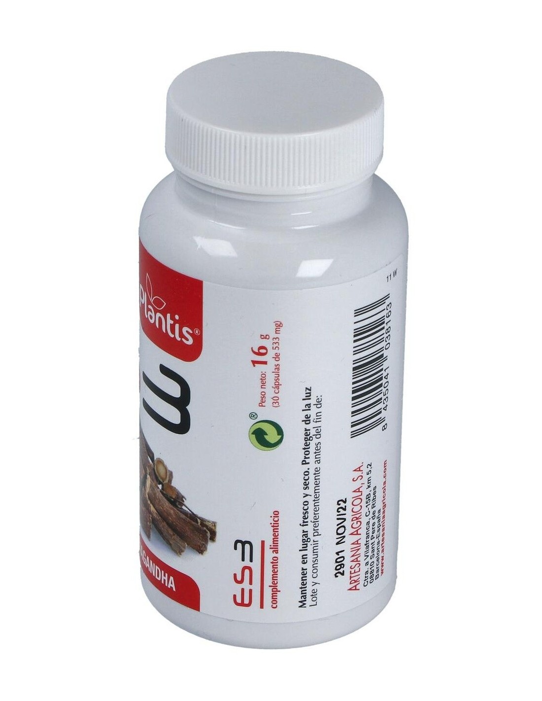 Las cápsulas de Estrés Plantis, formuladas con estigmas de Azafrán y raíz de Ashwangandha, ayudan a conseguir una relajación mental y física proporcionado el equilibrio necesario para que la mente este en un estado positivo permitiendo afrontar los retos diarios de una manera optimista y preparando al organismo para un descanso nocturno adecuado.ES3 es la alternativa natural que ayuda a gestionar el stress, disminuir la tensión, la ansiedad y a mejorar el humor a través del control de las emociones.El azafrán de ES3 es de origen español (Castilla-La Mancha) y se ha obtenido mediante una técnica patentada dando lugar a Affron® que es el único extracto natural de azafrán concentrado en Lepticrosalidos®.Los Lepticrosalidos ® son los principales componentes bioactivos relacionados con la prevención de trastornos depresivos, y también responsable de las propiedades organolépticas del azafrán.a Ashwangandha de ES3, es KSM-66® el extracto de mayor concentración de raíz de Withania somnífera L. Se ha obtenido mediante un proceso de extracción basado en los principios Green-Chemistry, sin utilizar alcohol u otros disolventes químicos. Durante 4000 años, se ha utilizado la raíz de Ashwagandha en la tradición india de Ayurveda para reforzar la salud general y el bienestar.Composición activa por cápsula: