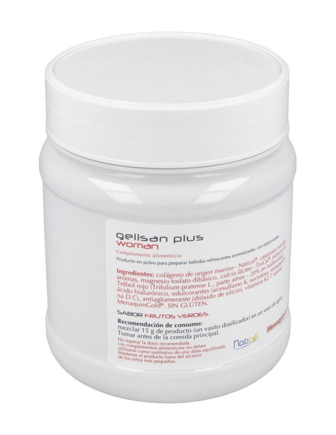 Gelisan Woman Colageno 300 G de Artesania es un suplemento diseñado para mujeres que buscan apoyar el cuidado de su piel y articulaciones mediante una fórmula que incluye colágeno. Este producto se adapta a quienes desean complementar su rutina diaria con ingredientes que contribuyen a mantener la elasticidad y firmeza de la piel.