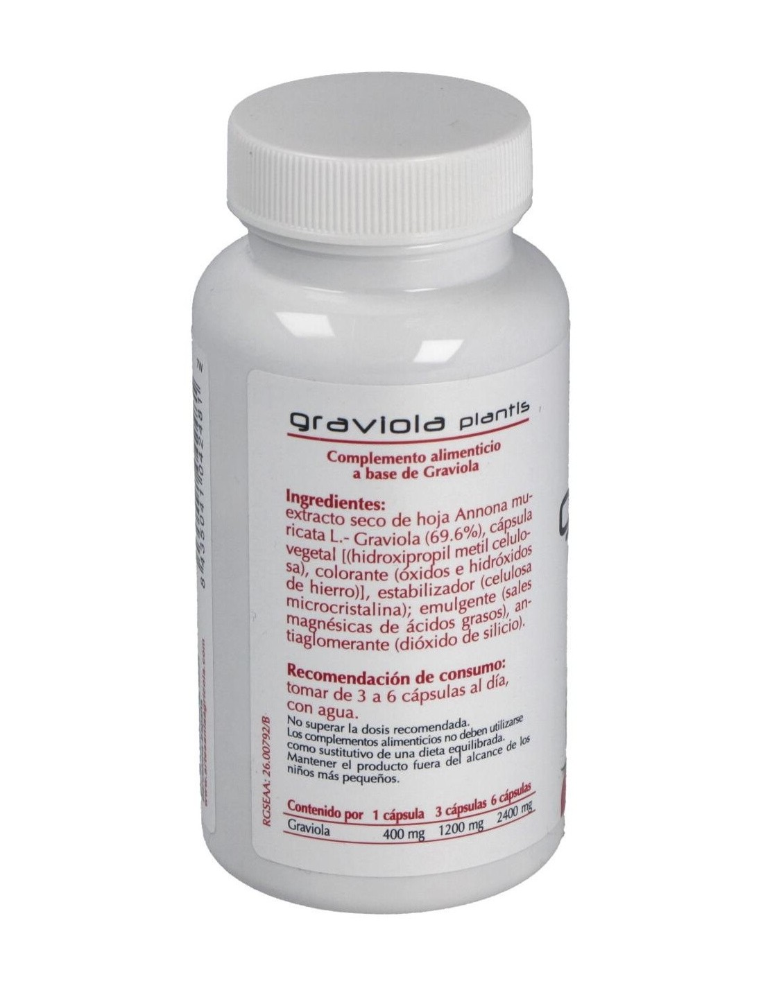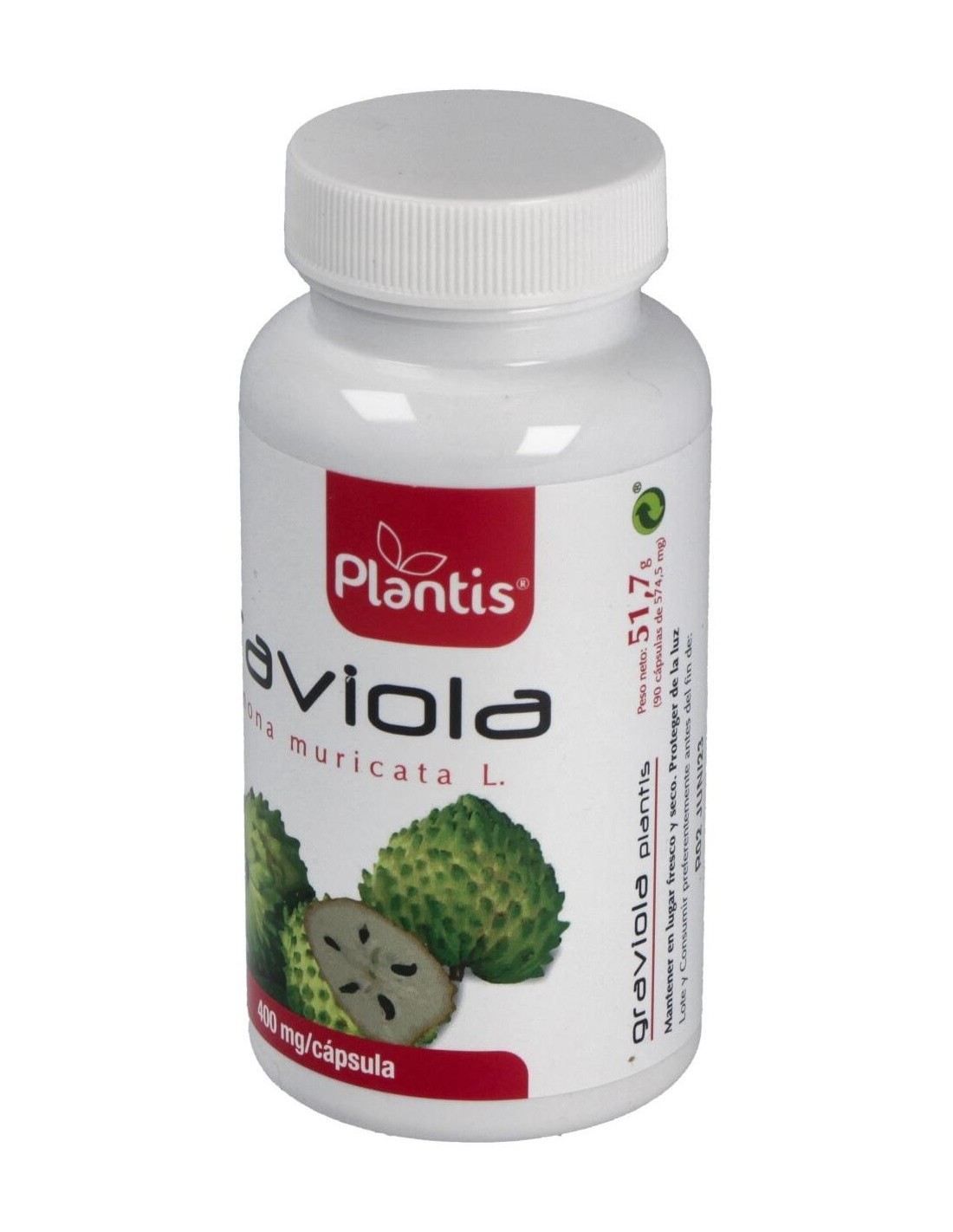 La graviola (Annona muricata) también conocida como guanabana es un árbol cuyo fruto es parecido a la chirimoya, su pulpa es blanda y de color blanco, su textura carnosa, cremosa y jugosa, su sabor es aromático y ácido. La graviola es rica en carbohidratos, fibra, potasio, sodio, magnesio, fósforo, hierro y vitamina C.La graviola se conoce desde el Perú prehispánico y se ha usado tradicionalmente en casos de diabetes, raquitismo, catarros, indigestión y parasitosis intestinal por sus propiedades astringentes, depurativas y digestivas.Más recientemente, diversas investigaciones han sacado a la luz que las hojas de Graviola tienen mayor riqueza en ácido ascórbico, ácido láctico y málico que el fruto como también una mayor cantidad de hierro, fósforo, calcio y vitaminas A, B1 y B.; sin embargo es su riqueza en acetogeninas, consideradas un principio activo anticancerígeno o citostatico, que ha abierto la posibilidad de su utilización como coadyuvante en tratamientos tumorales.Composición activa por cápsula:400 mg de graviola.Ingredientes:Extracto seco de hojas de Annona muricata L- Graviola (69.6%), cápsula vegetal [(hidroxipropil metil celulosa), colorante (óxidos e hidróxidos de hierro)], estabilizador (celulosa microcristalina); emulgente (sales magnésicas de ácidos grasos), antiaglomerante (dióxido de silicio).Modo de empleo:Tomar de 3 a 6 cápsulas al día, con agua.Presentación:Envase de 90 cápsulas.