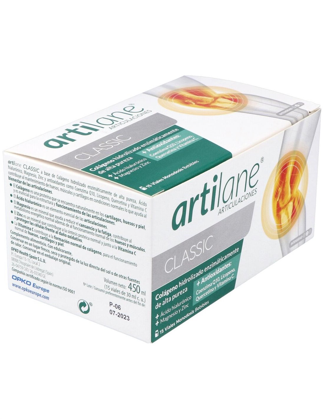 Artilane Classic 15 Viales es un complemento alimenticio de Artilane que ayuda a combatir la degeneración articular. Formulado con colágeno hidrolizado y ácido hialurónico que dan soporte para regenerar el cartílago y el líquido sinovial, el licopeno, la quercetina y la vitamina C que ayudan a bloquear la reacción oxidativa y además, contiene Q10, magnesio y zinc.