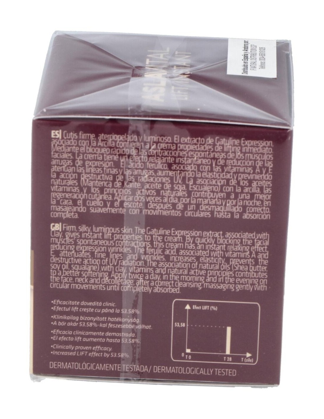 ASLA VITAL (DRA. ANA ASLAN)El extracto de Gatuline Expression junto con la Arcilla, ofrece propiedades antiarrugas únicas. El Ácido Ferúlico, junto con las vitaminas A y E, redu