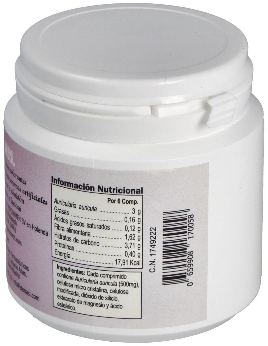 ATENAAuricularia-Mrl 500Gr. 90Comp. de ATENA es un suplemento natural elaborado con extracto de Auricularia, conocido por sus propiedades antioxidantes y beneficios para el sistema inmunológico. Cada envase contiene 90 comprimidos que facilitan su consumo diario, aportando bienestar y energía. Ideal para quienes buscan cuidar su salud de forma natural y efectiva. Producto de alta calidad, confiable y fácil de incorporar en tu rutina diaria.