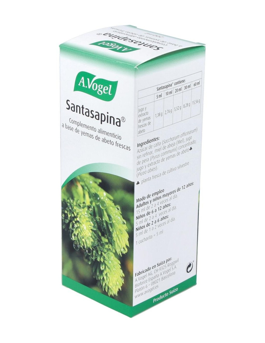 A.VOGELEn la fabricación de este jarabe se utilizan los brotes frescos de las yemas de abeto de propiedades balsámicas, antitusígenas y expectorantes.Santasa