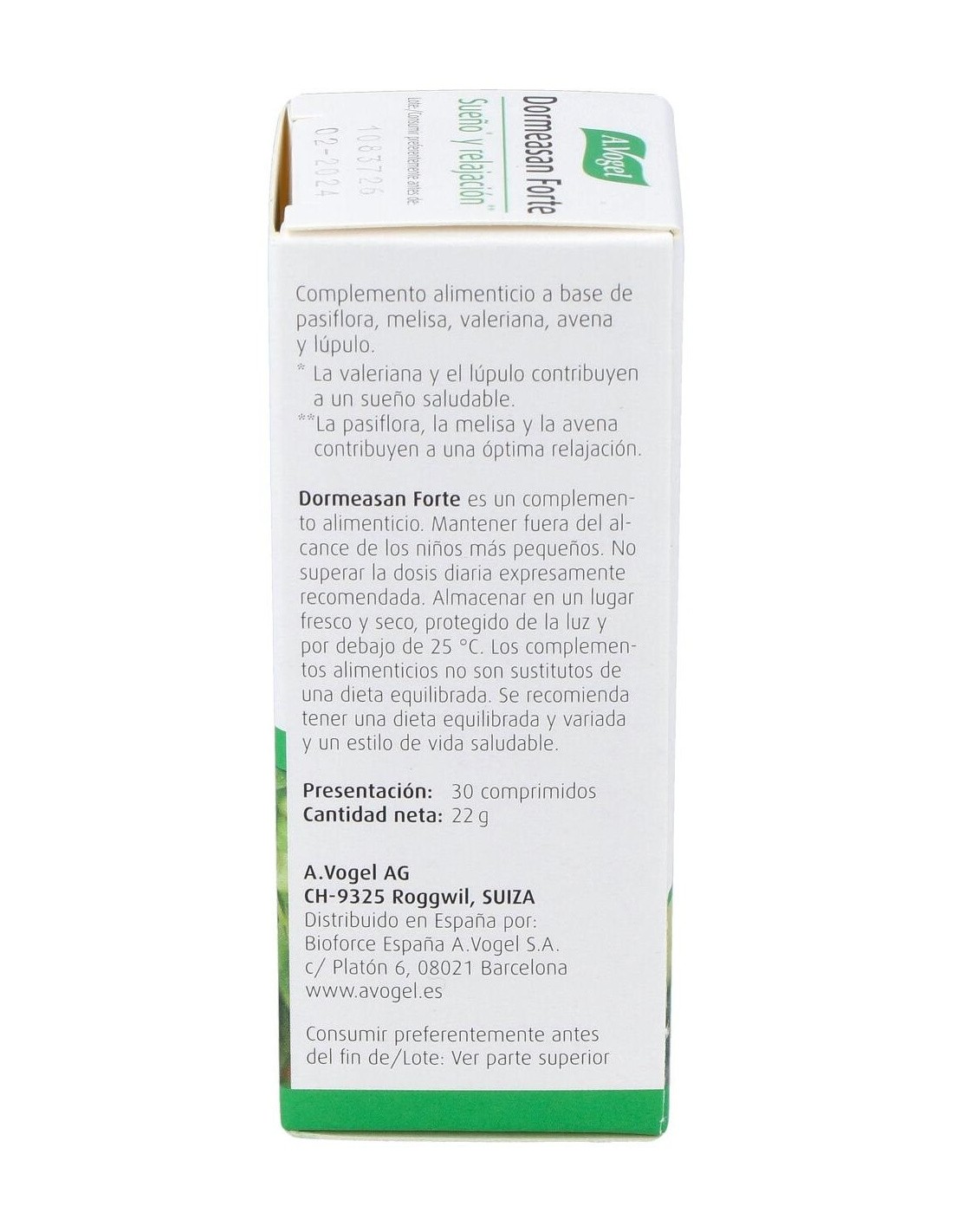 A. Vogel Dormeasan Forte 30comp es un complemento alimenticio en forma de cápsulas que contribuye a mejorar el descanso durante el sueño, ideal para levantarse fresco y con energía.
