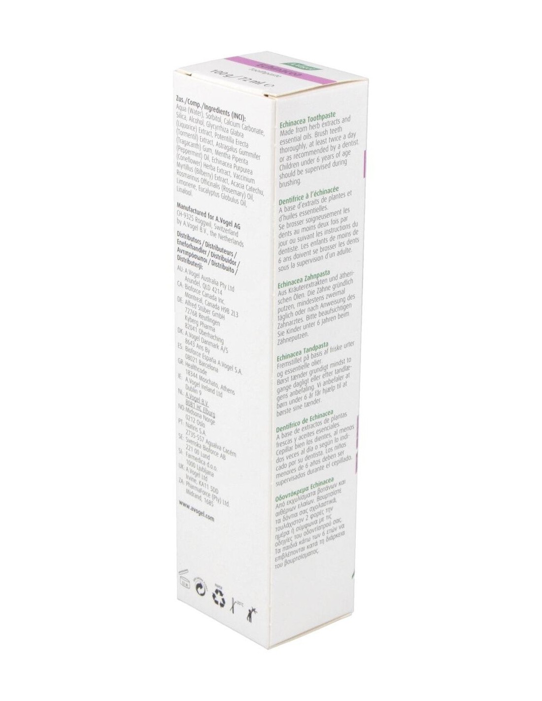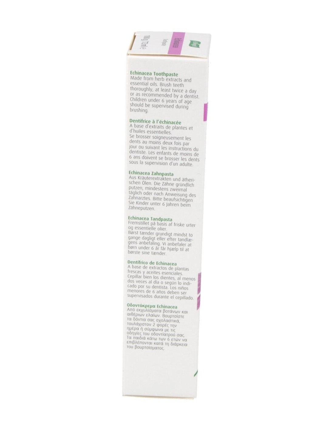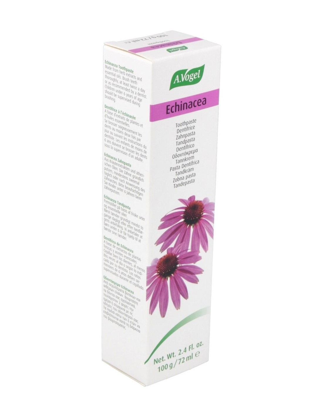 Dentaforce Echinacea Pasta Dental Gr 100 de A.Vogel es una pasta dental formulada para personas que buscan una higiene bucal diaria con ingredientes de origen natural. Está diseñada para quienes prefieren productos que combinan cuidado bucal y componentes botánicos en su rutina.
