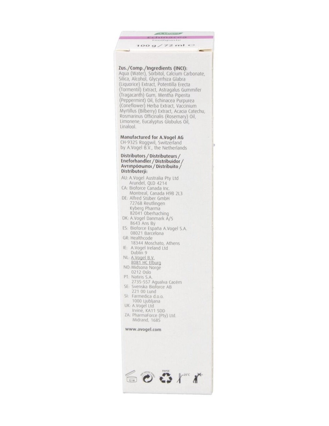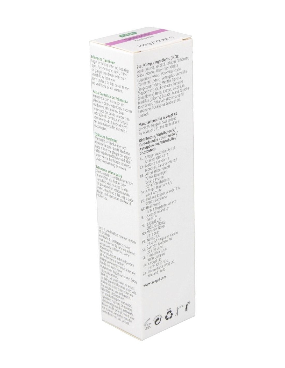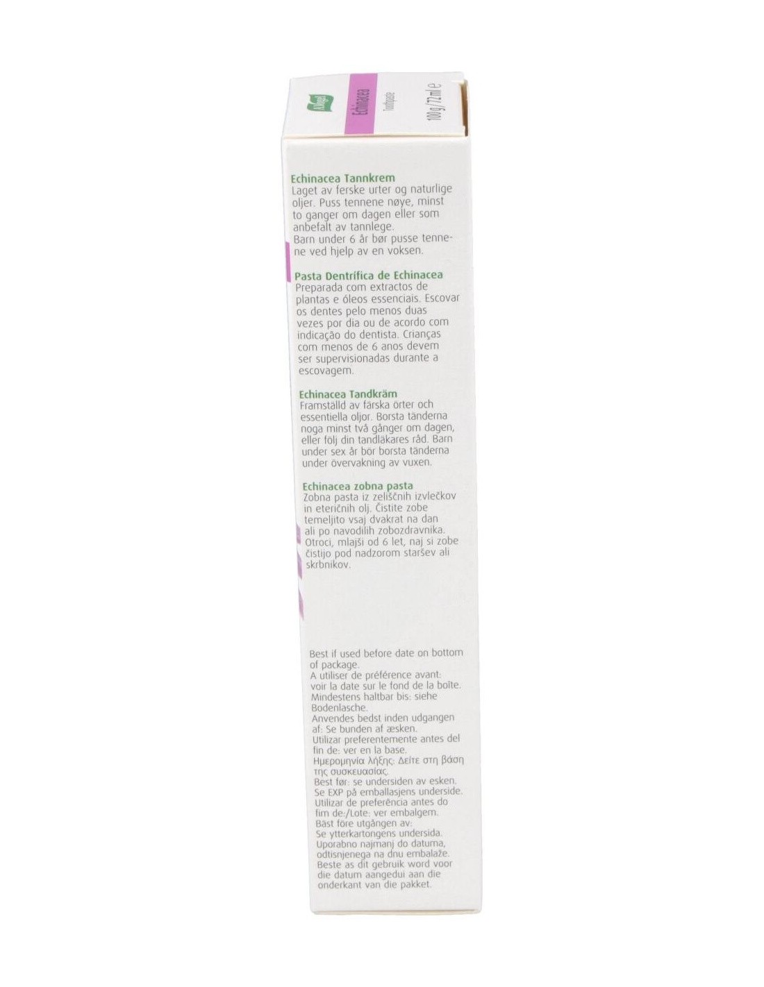 Dentaforce Echinacea Pasta Dental Gr 100 de A.Vogel es una pasta dental formulada para personas que buscan una higiene bucal diaria con ingredientes de origen natural. Está diseñada para quienes prefieren productos que combinan cuidado bucal y componentes botánicos en su rutina.