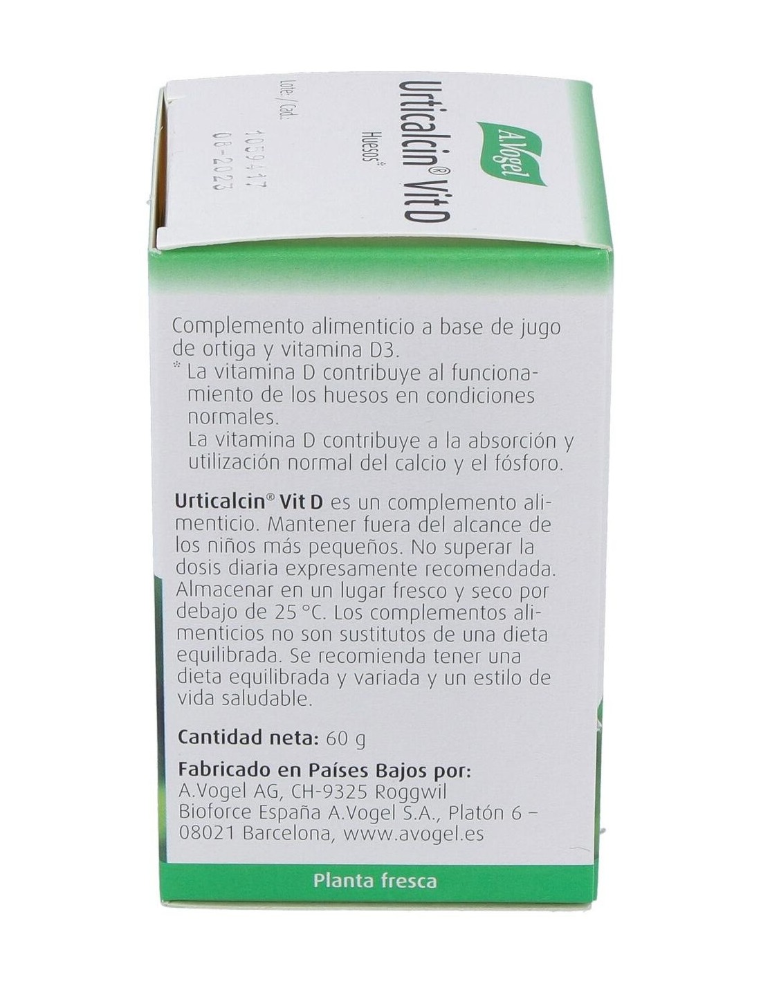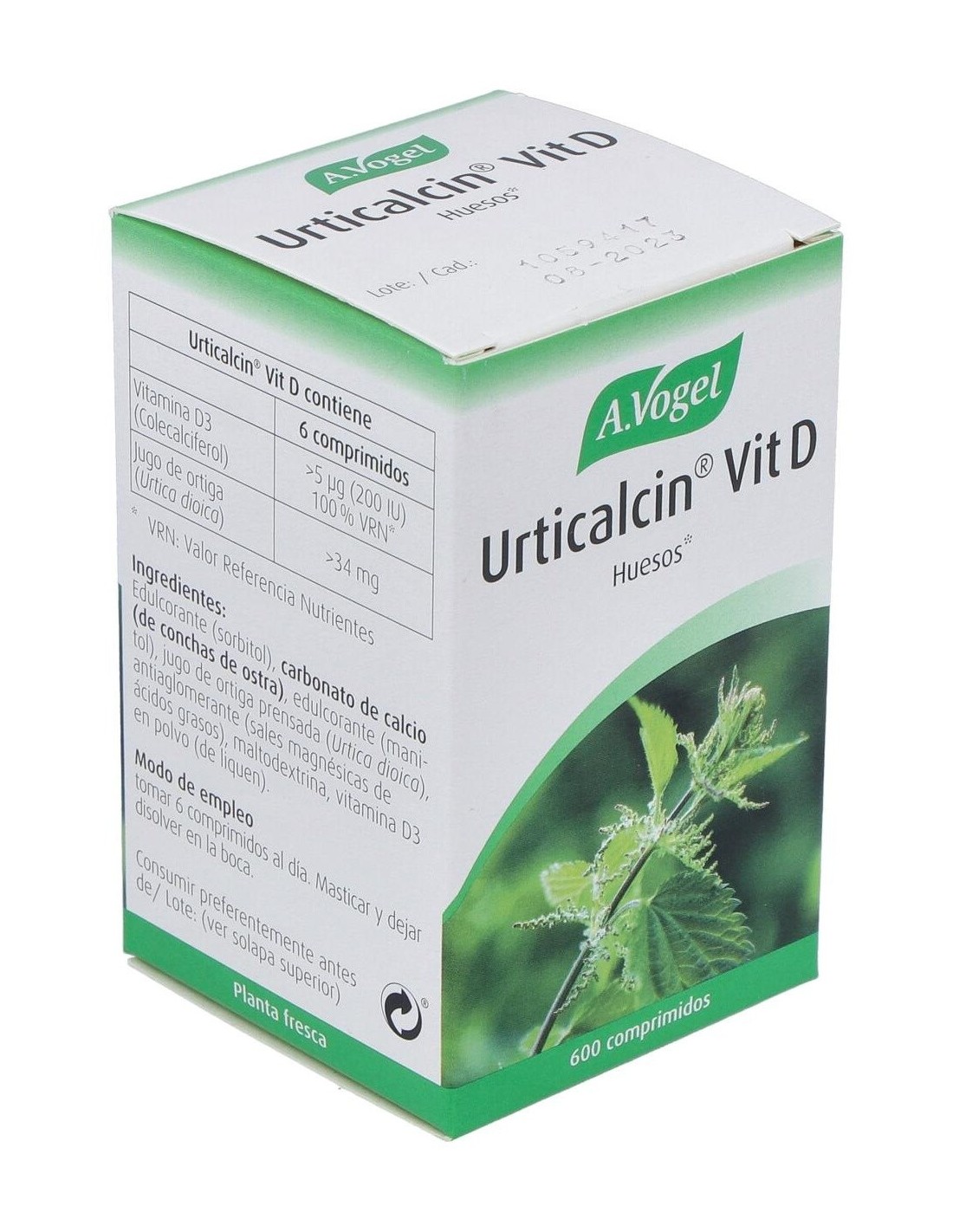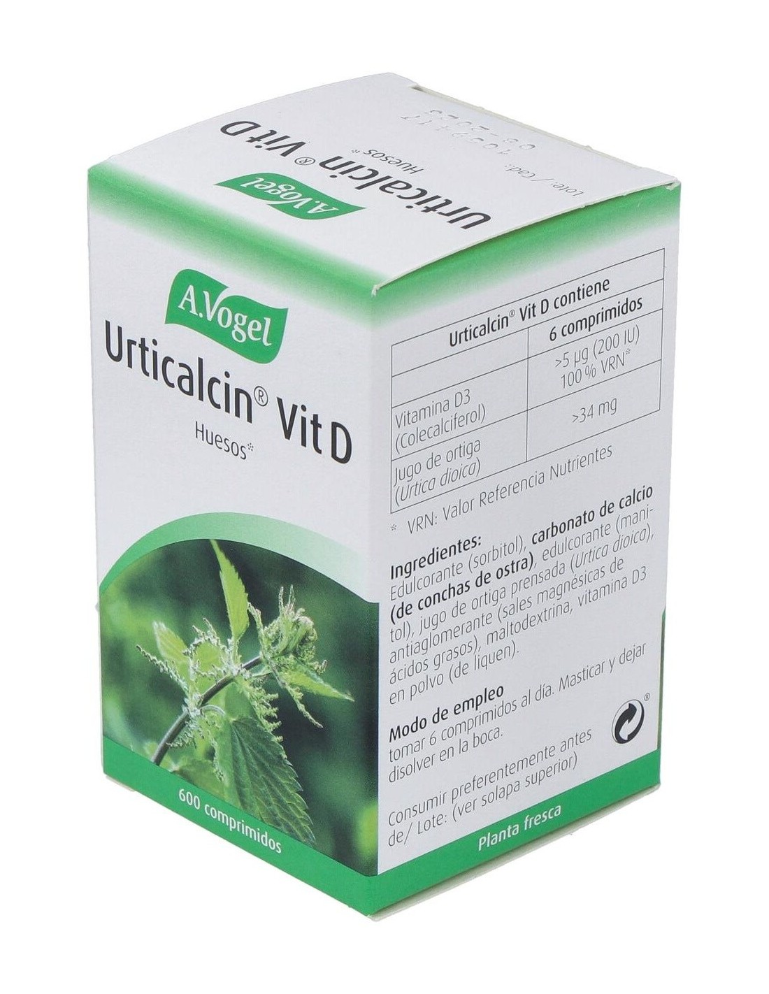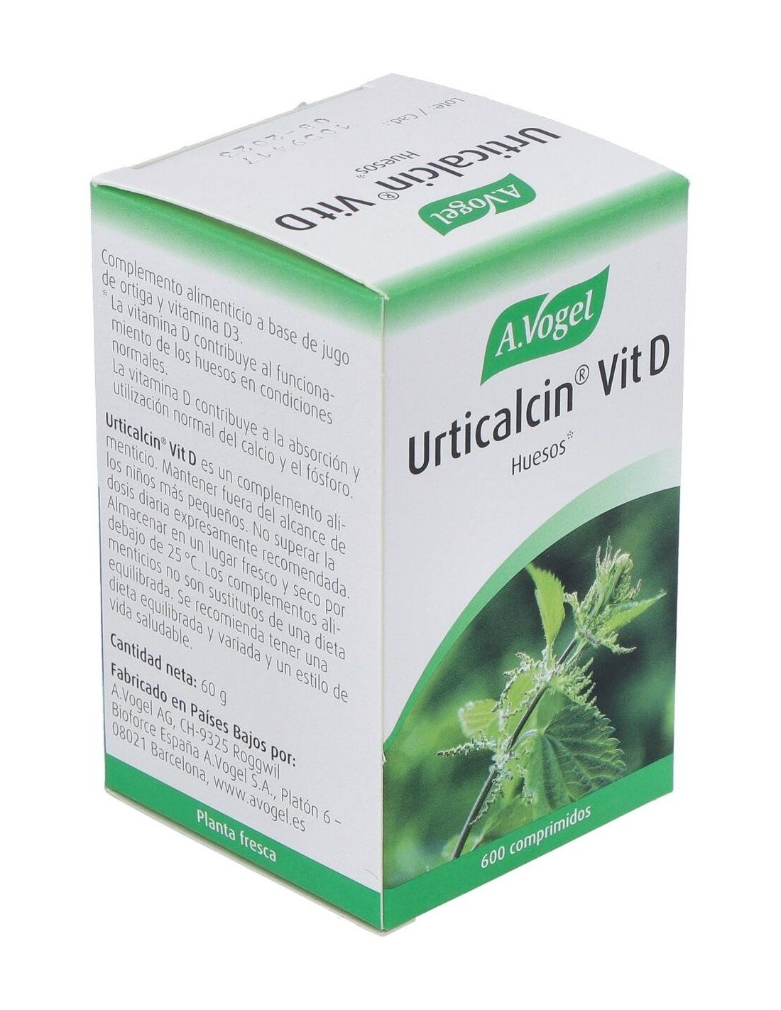 A.VOGELUrticalcin Vit.D Comp. 600 de A.Vogel es un suplemento para personas que buscan apoyar la salud ósea. Con vitamina D y calcio, contribuye al mantenimiento de huesos y dientes en condiciones normales.