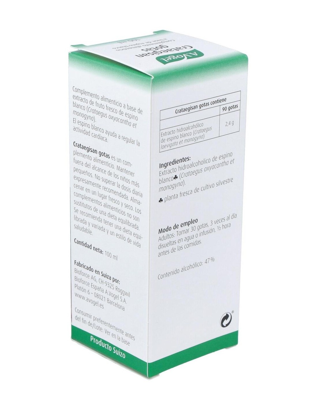 A.VOGELCrataegisan Gotas Ml 100 de A.Vogel es un complemento natural para adultos que apoya la salud cardiovascular, formulado a partir de extractos de espino blanco para contribuir al bienestar del corazón.