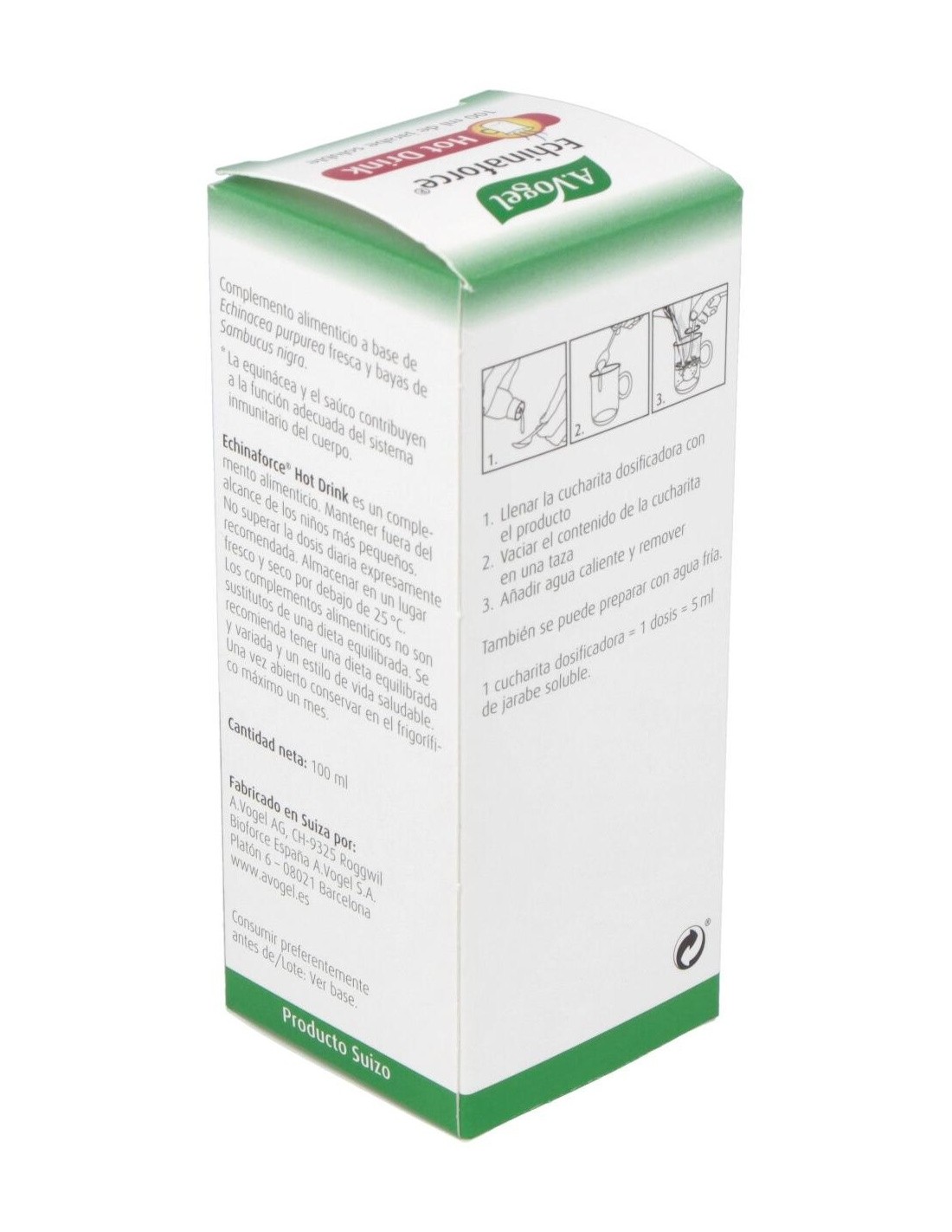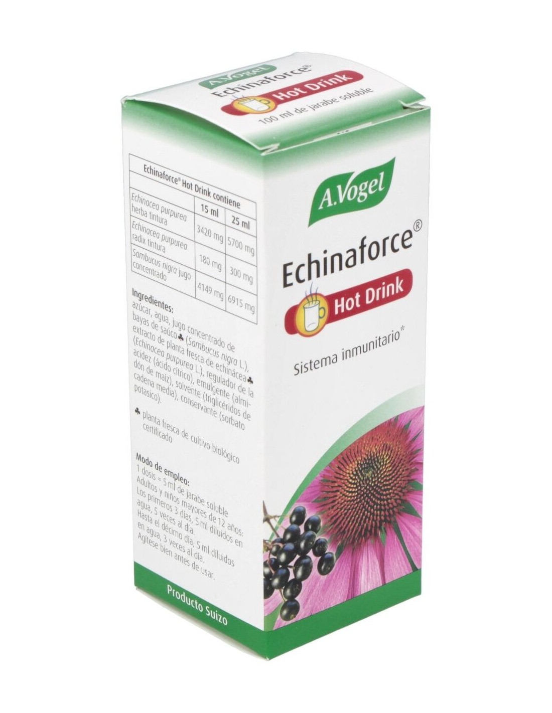 Echinaforce Hot Drink Ml 100 de A.Vogel es una bebida caliente formulada para personas que buscan una opción natural para complementar su bienestar diario. Está diseñada para quienes prefieren productos a base de plantas que se integran fácilmente en su rutina cotidiana.