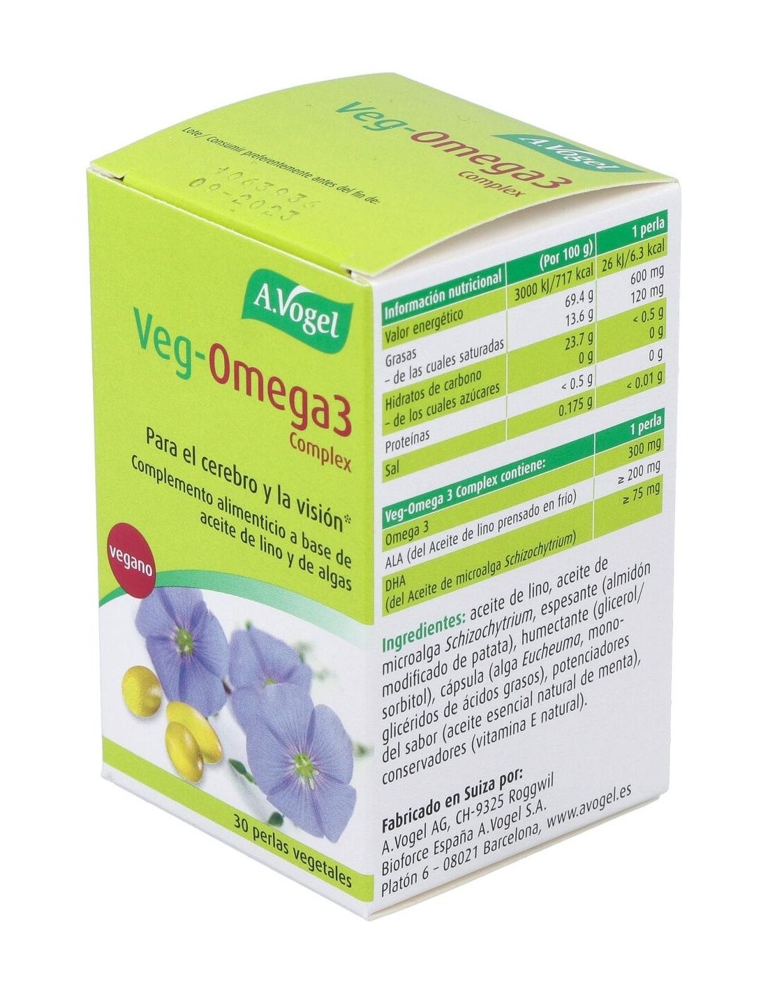 Veg-Omega-3 Complex Cápsulas 30 de A.Vogel es un suplemento diseñado para personas que buscan incorporar ácidos grasos esenciales de origen vegetal en su dieta diaria. Este producto es adecuado para quienes prefieren opciones basadas en ingredientes naturales y desean apoyar su bienestar general a través de una fuente vegetal de omega-3.