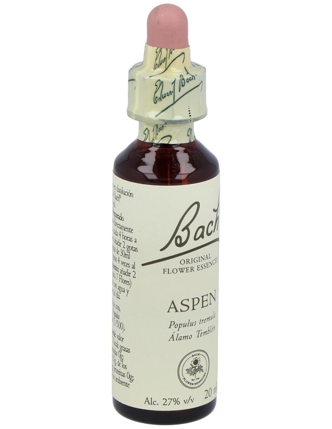 BACHEl (02) Aspen de Bach es una esencia floral dirigida a personas que buscan apoyo emocional frente a miedos o incertidumbres, facilitando tranquilidad mediante su fórmula natural y específica.