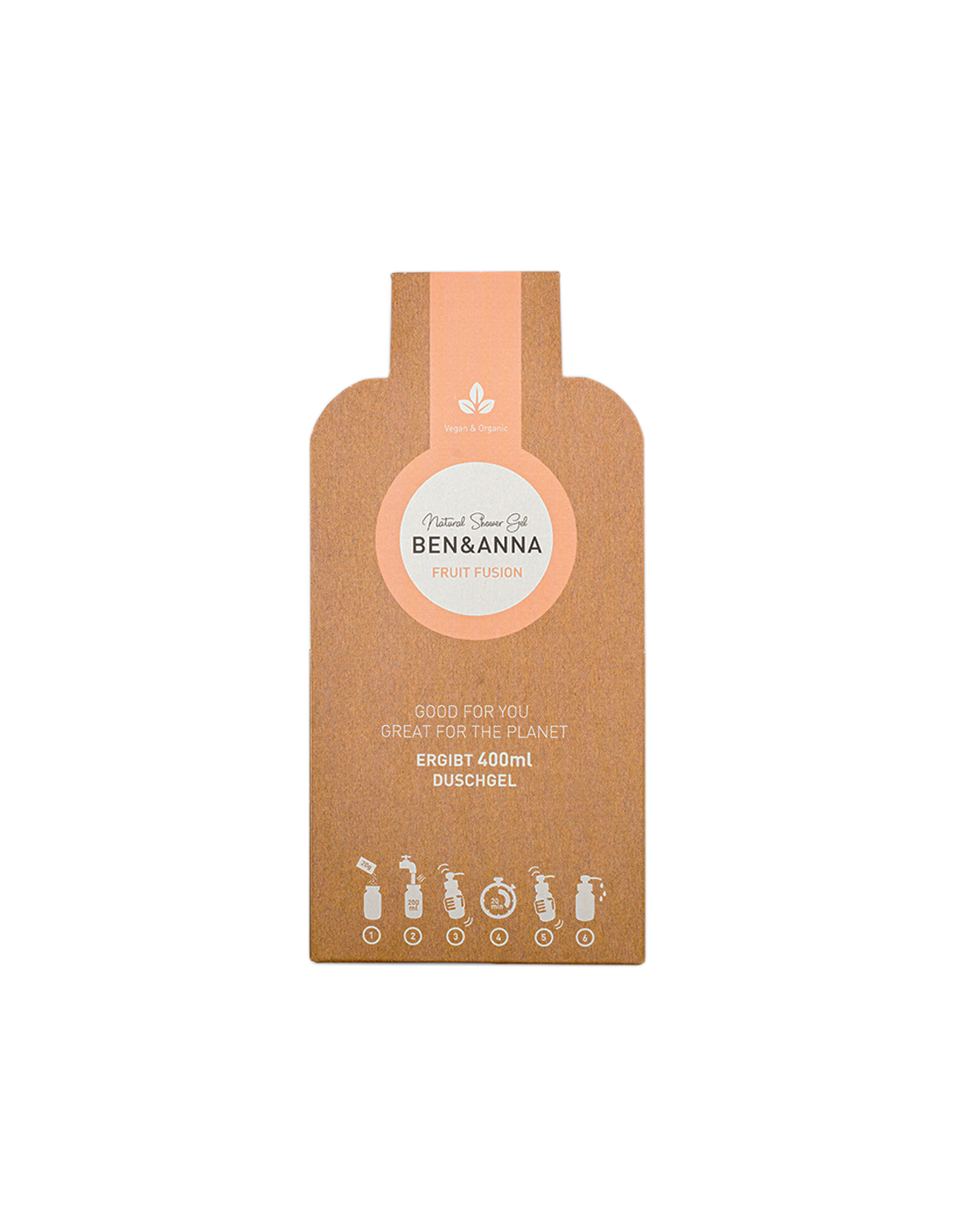 BEN&ANNACaracterísticas y Beneficios del Gel de ducha Fruit Fusion, copos secos a diluir en agua, 2x20g=400ml de Ben&Anna