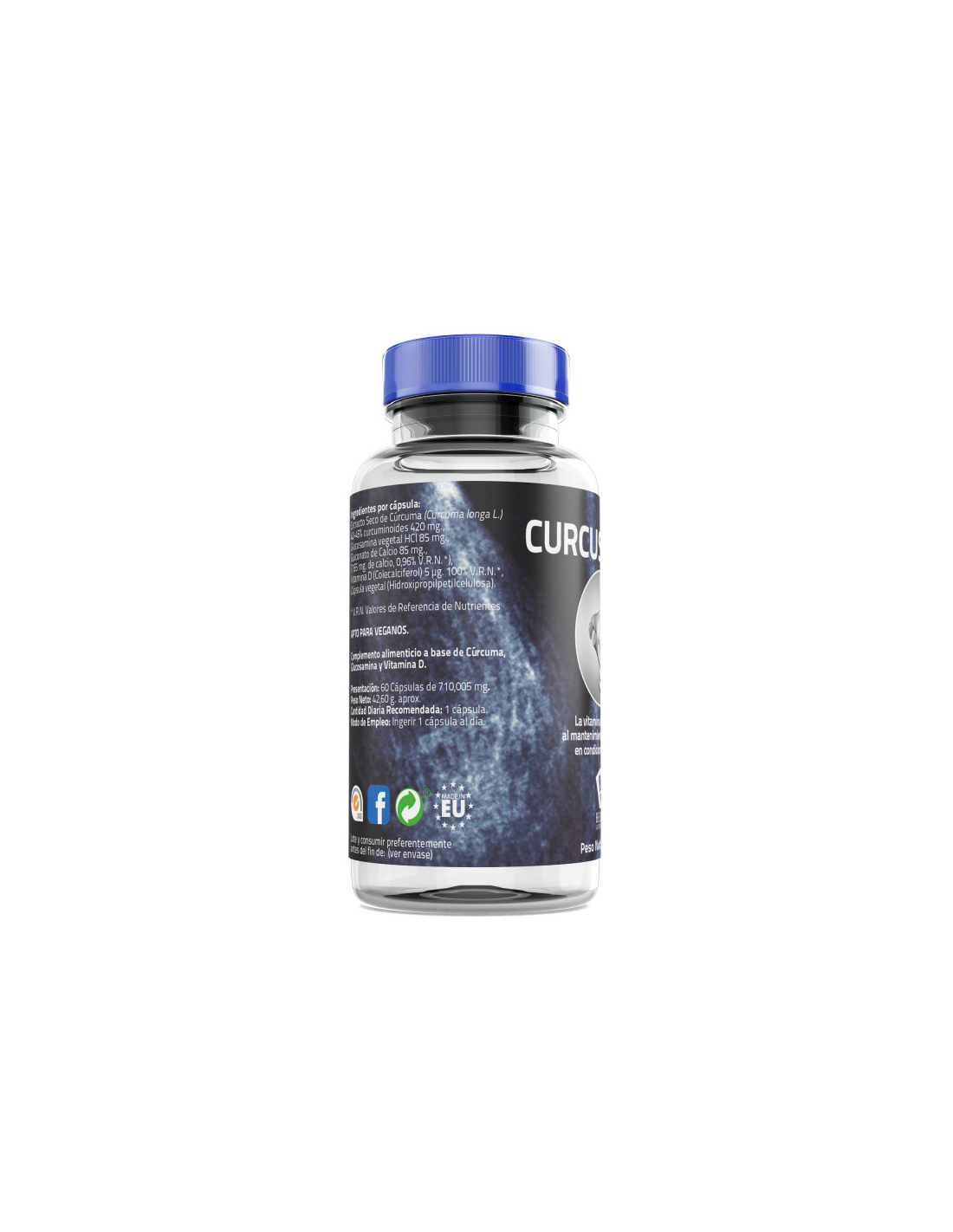 450 mg de extracto Seco Cúrcuma (Curcuma longa L.)(40-45% de curcuminoides).