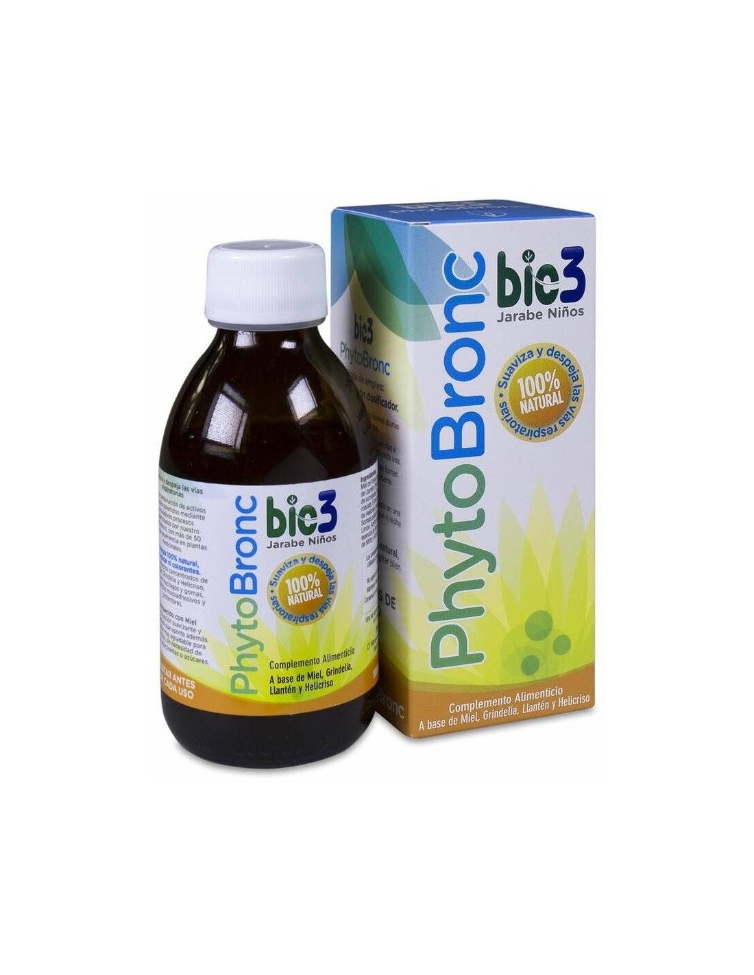 Bio3 Phytbronc Jarabe Niños 100% Natural 210g ayuda a suavizar y despejar la garganta de los más pequeños, calmando la irritación y protegiendo la mucosa. Es un jarabe balsámico hecho a base de ingredientes naturales como la miel y las plantas medicinales de Llantén, Grindelia y Helicriso. La combinación de estas plantas ricas en mucílagos y gomas, proporciona unos efectos antinflamatorios, mucoahesivos y protectores, que eliminan los mocos y las irritaciones, sin dañar la mucosa. La miel aporta una acción suavizante y protectora que, además, le da un sabor agradable.