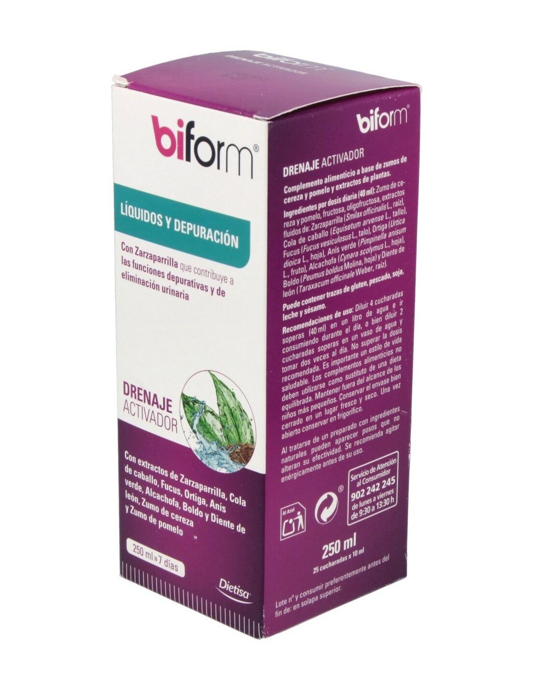 BIFORM®BIFORM | Biform Drenaje Activador 250mlBiform Drenaje Activador es un complemento alimenticio que ayuda a controlar el peso y eliminar los líquidos del organismo, por lo que es ideal para personas que realicen dietas de control de peso o tengas problemas de retención de líquidos. Gracias a Biform podrás seguir un etilo de vida saludable y obtener el peso que deseabas en poco tiempo ya que sus productos contienen propiedades que permiten absorber las grasas ingeridas y reducir el ap.