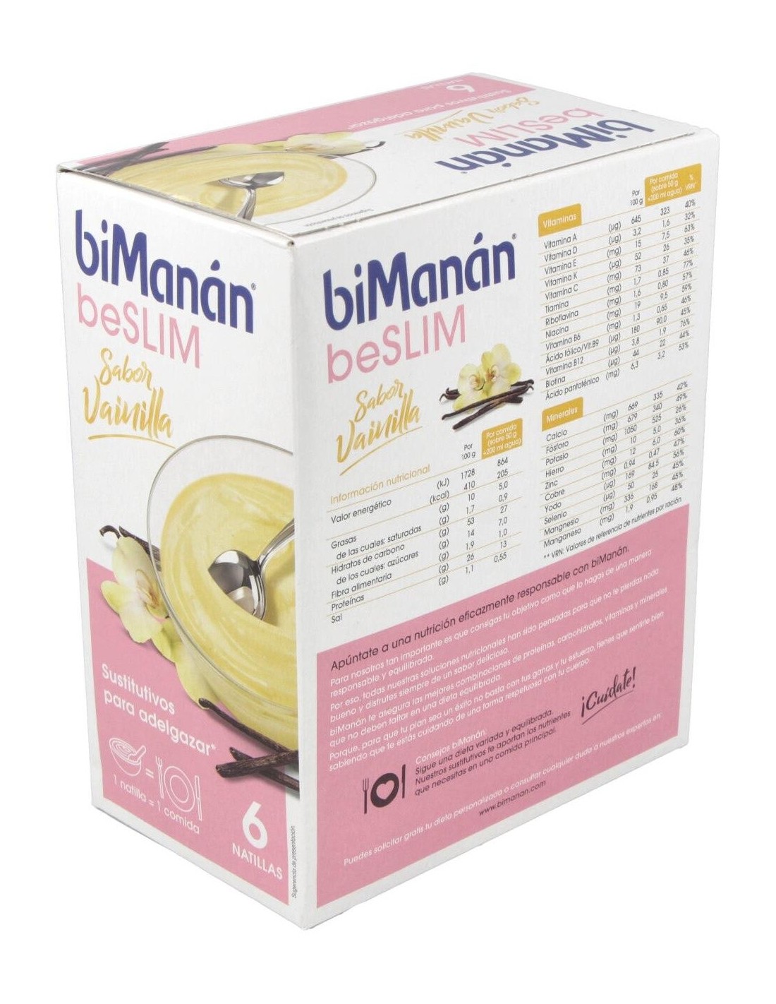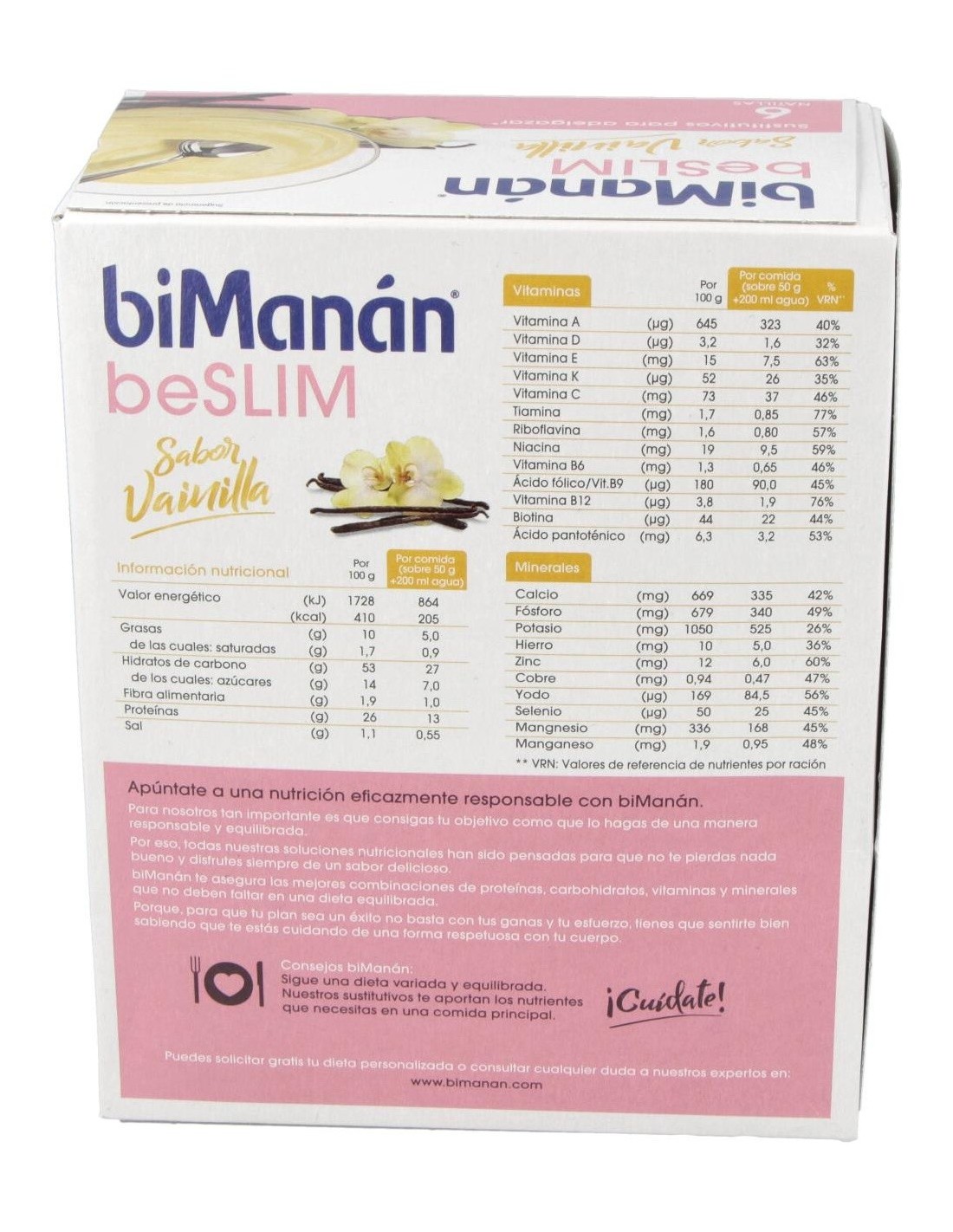 BIMANANSustitutivo de una comida para el control de peso con edulcorantes. Con 12 vitaminas y 11 minerales.