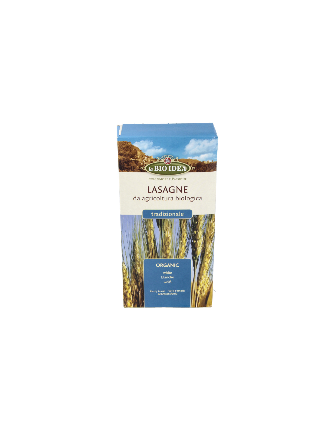 Láminas de lasaña blanca producidas tradicionalmente en el norte de Italia. Las láminas ya están precocidas, por lo que se pueden colocar directamente en la fuente del horno.