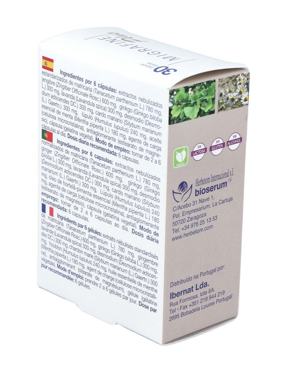 BIOSERUMHerbetom Migrafine Plus 30 cápsulas está destinado al tratamiento y prevención de migrañas. Modo de empleoTomar de 2 a 6 cápsulas al día.