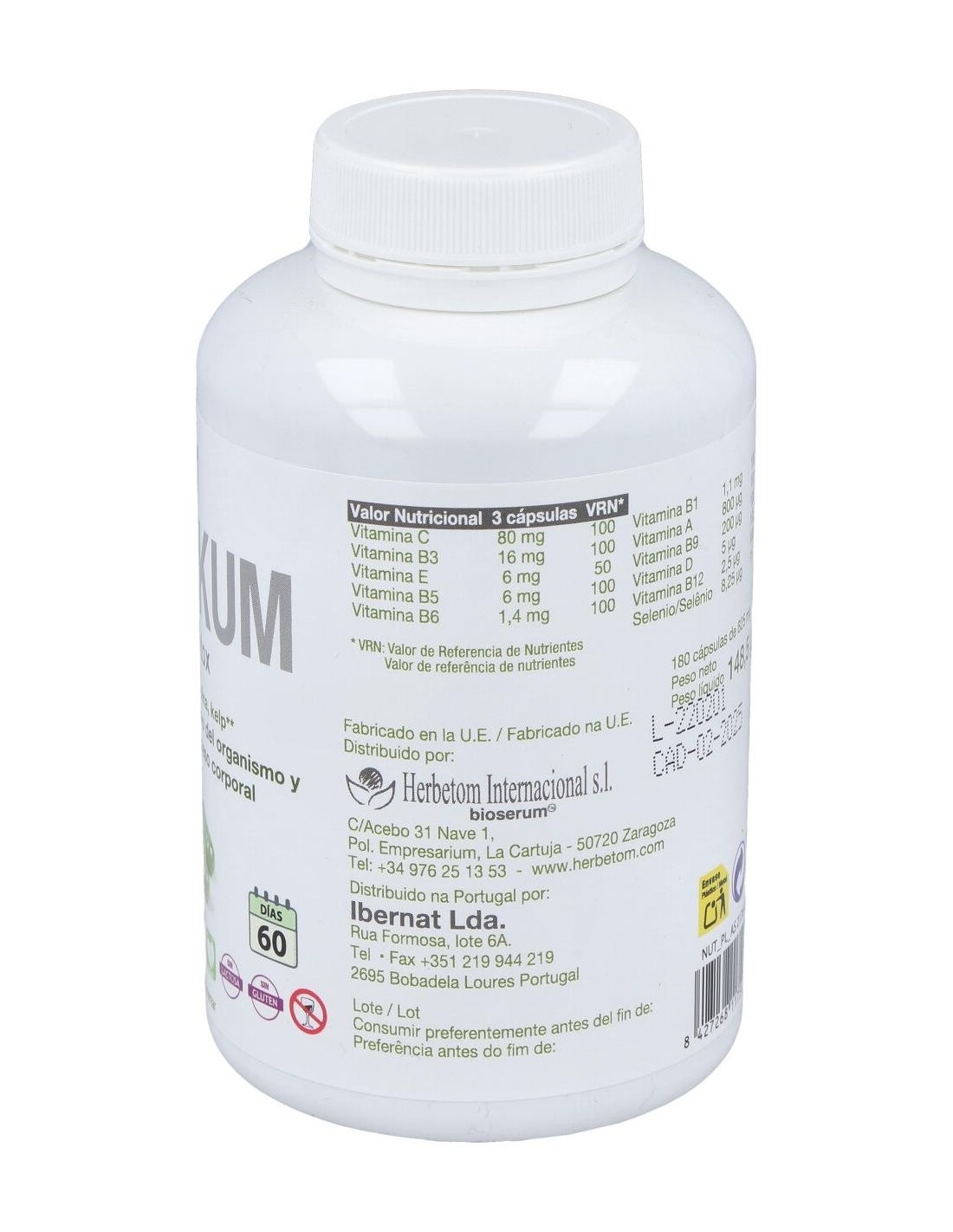 BIOSERUMHerbetom Aminikum 180 Cápsulas está formulado con alga chlorella que depura el organismo. También, con alga kelp, que regula el peso corporal.