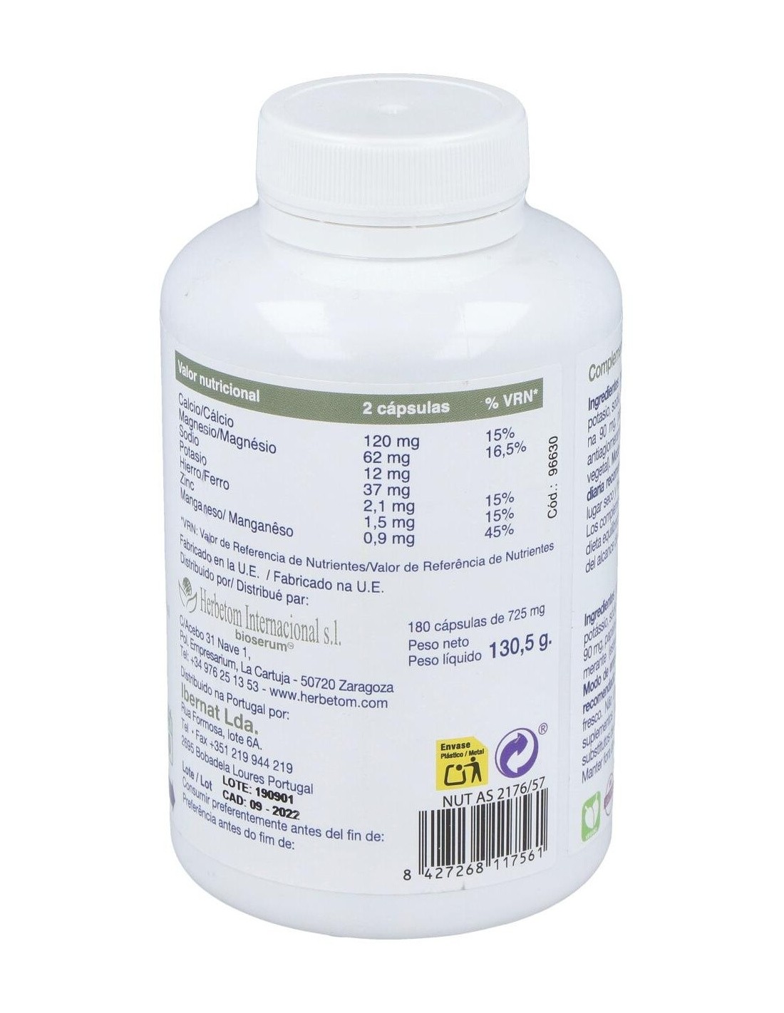 BIOSERUMHerbetom Boondax Min 180 cápsulas ayuda a equilibrar la relación ácido-base. Alcalinización de la dieta.