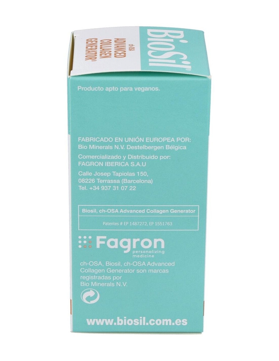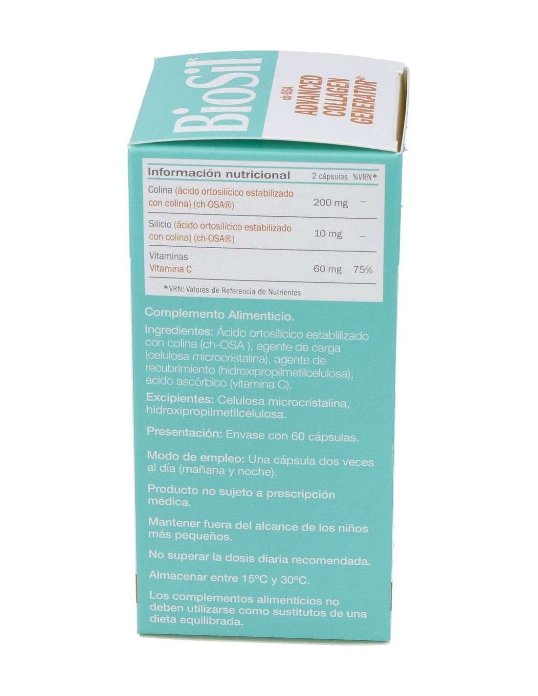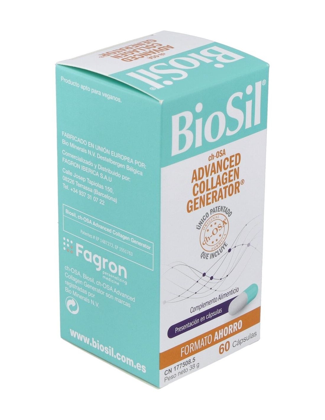 BIOSILBIOSIL | BioSil 60cápsEl colágeno es una proteína que genera fibras muy resistentes y flexibles, las cuales forman parte de muchos tejidos de nuestro cuerpo: articulaciones, huesos, piel, músculos y tendones.Nuestro organismo produce colágeno, pero a partir de los 30 años pierde capacidad para generar esta proteína, por lo que las zonas que contienen colágeno empezarán a envejecer y se puede perder movilidad en las articulaciones o tersura en la piel.