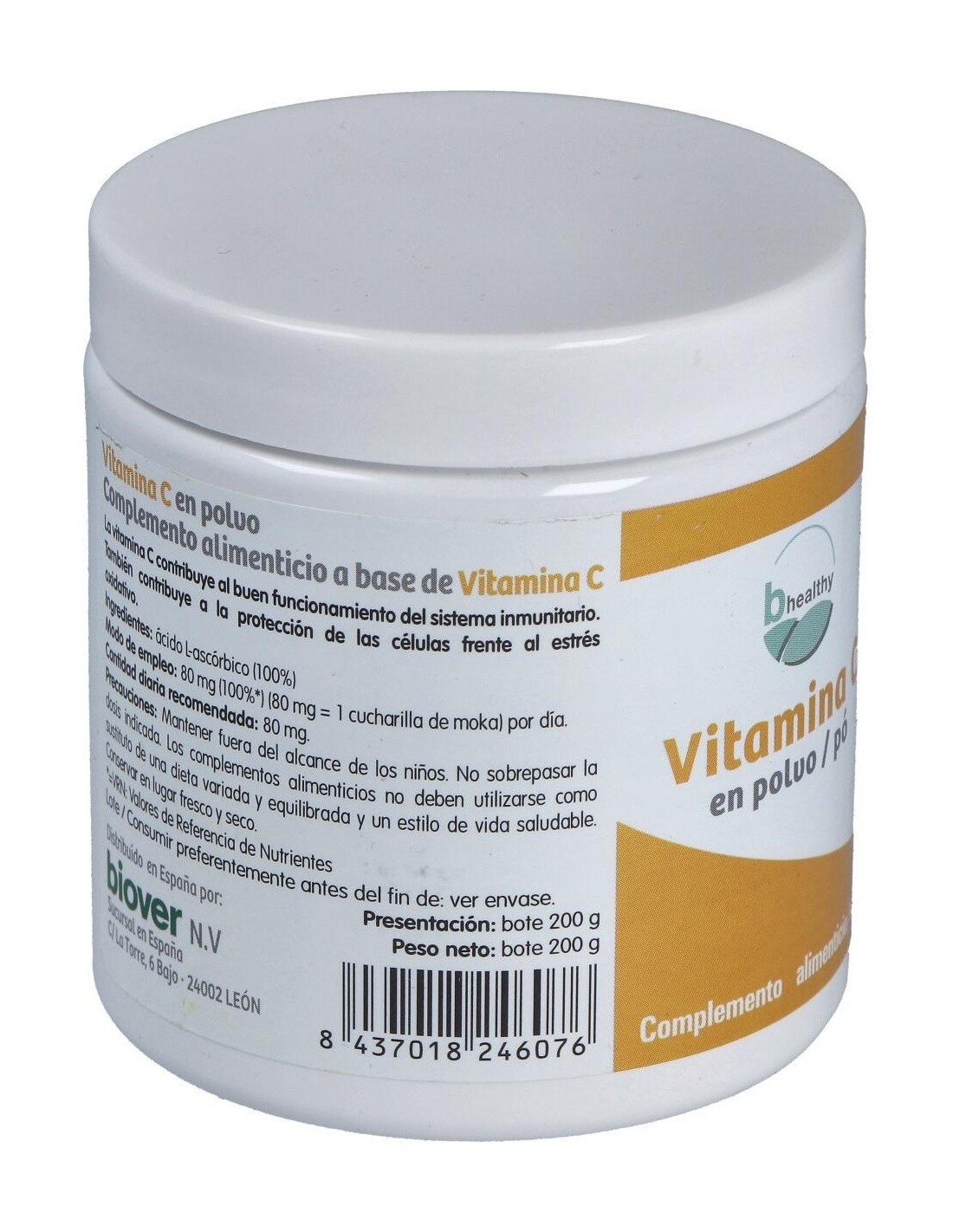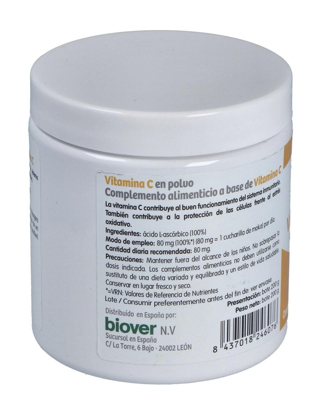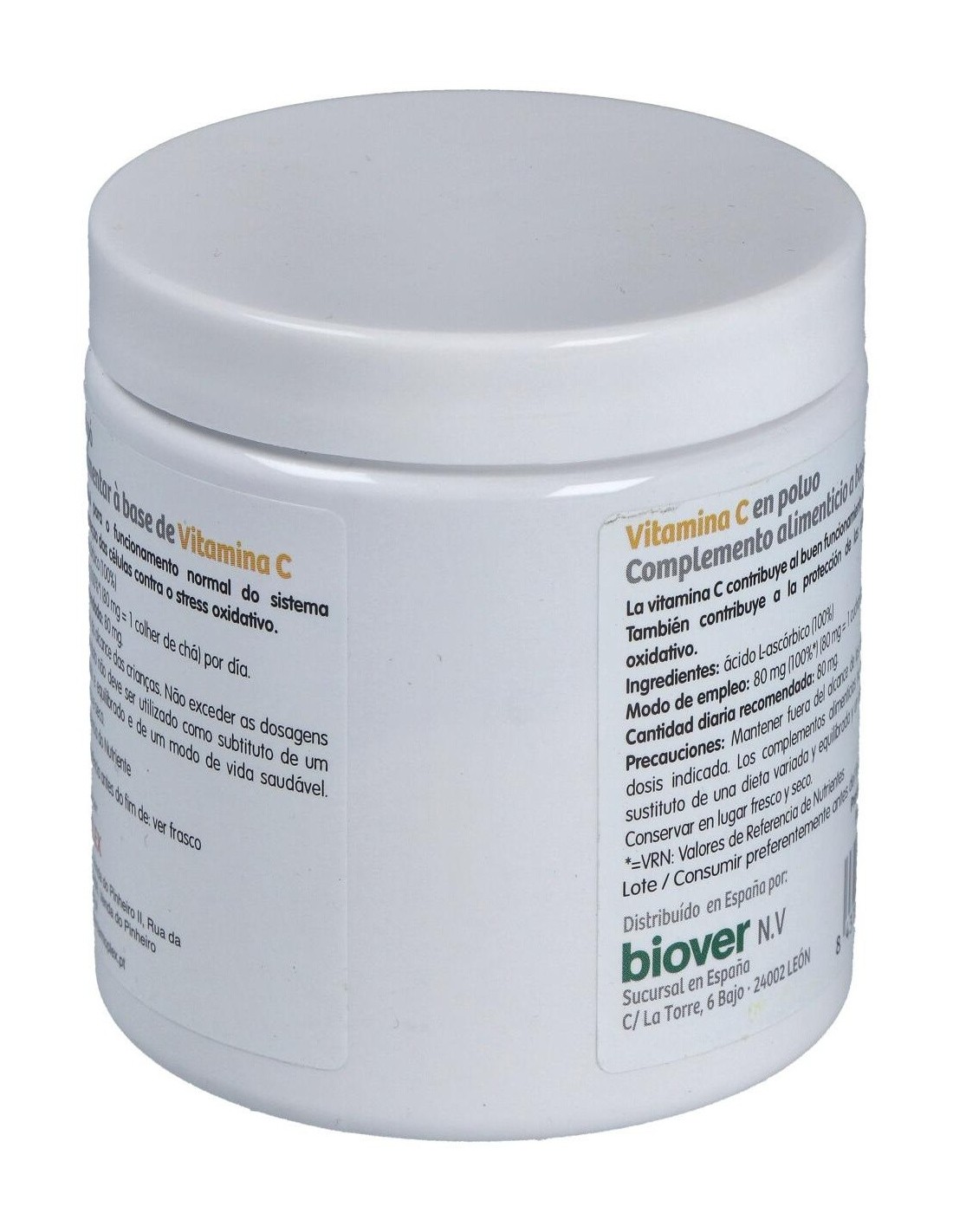 BIOVERComplemento alimenticio a base de vitamina C (Ácido l-ascórbico) 100%. El producto presenta envase de 200g de contenido neto.