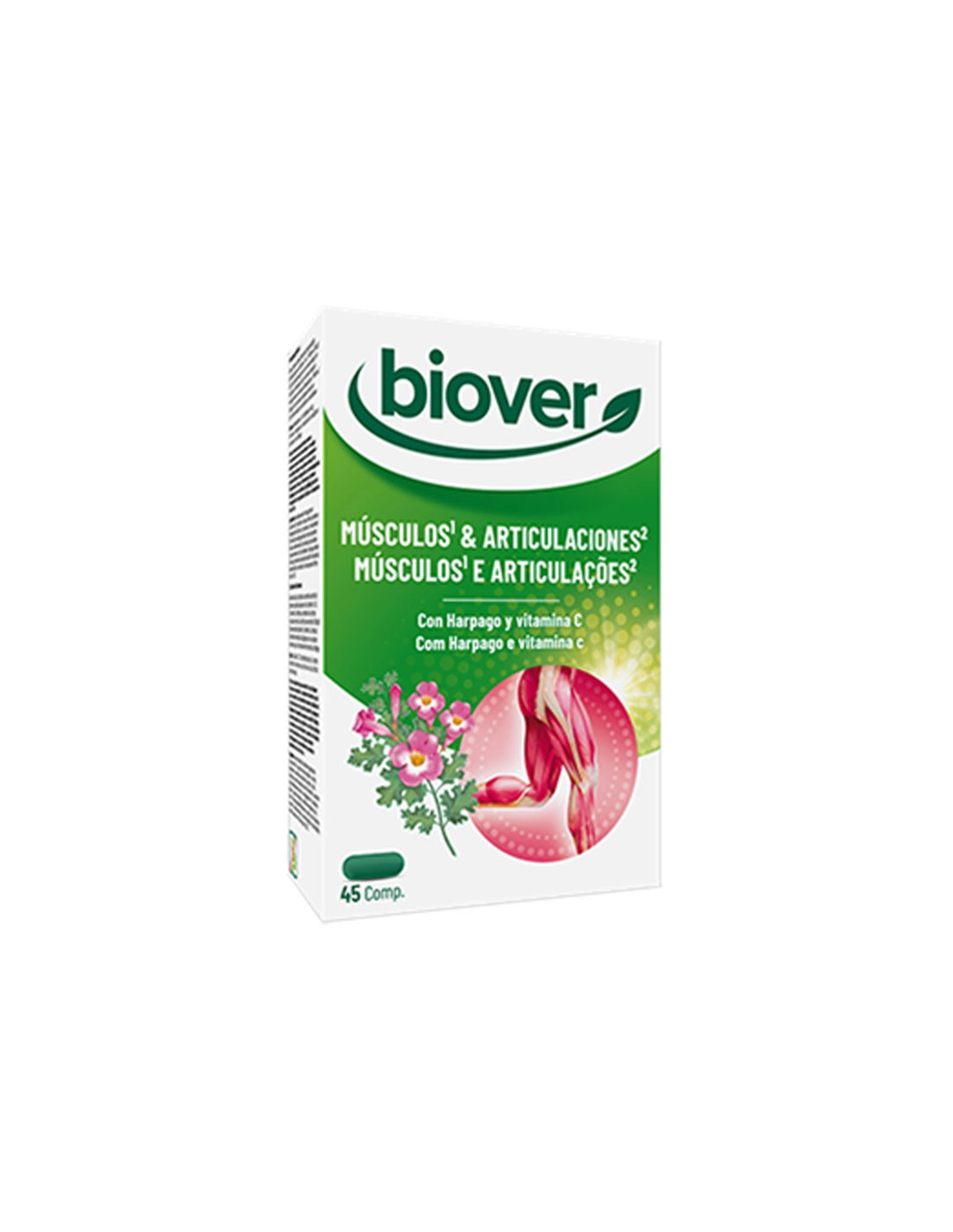 BIOVERMusculos y articulaciones (Harpago forte+vit.C) 45 comprimidos Biover es un suplemento para personas activas que ayuda a mantener la salud muscular y articular mediante una fórmula con harpagófito y vitamina C.