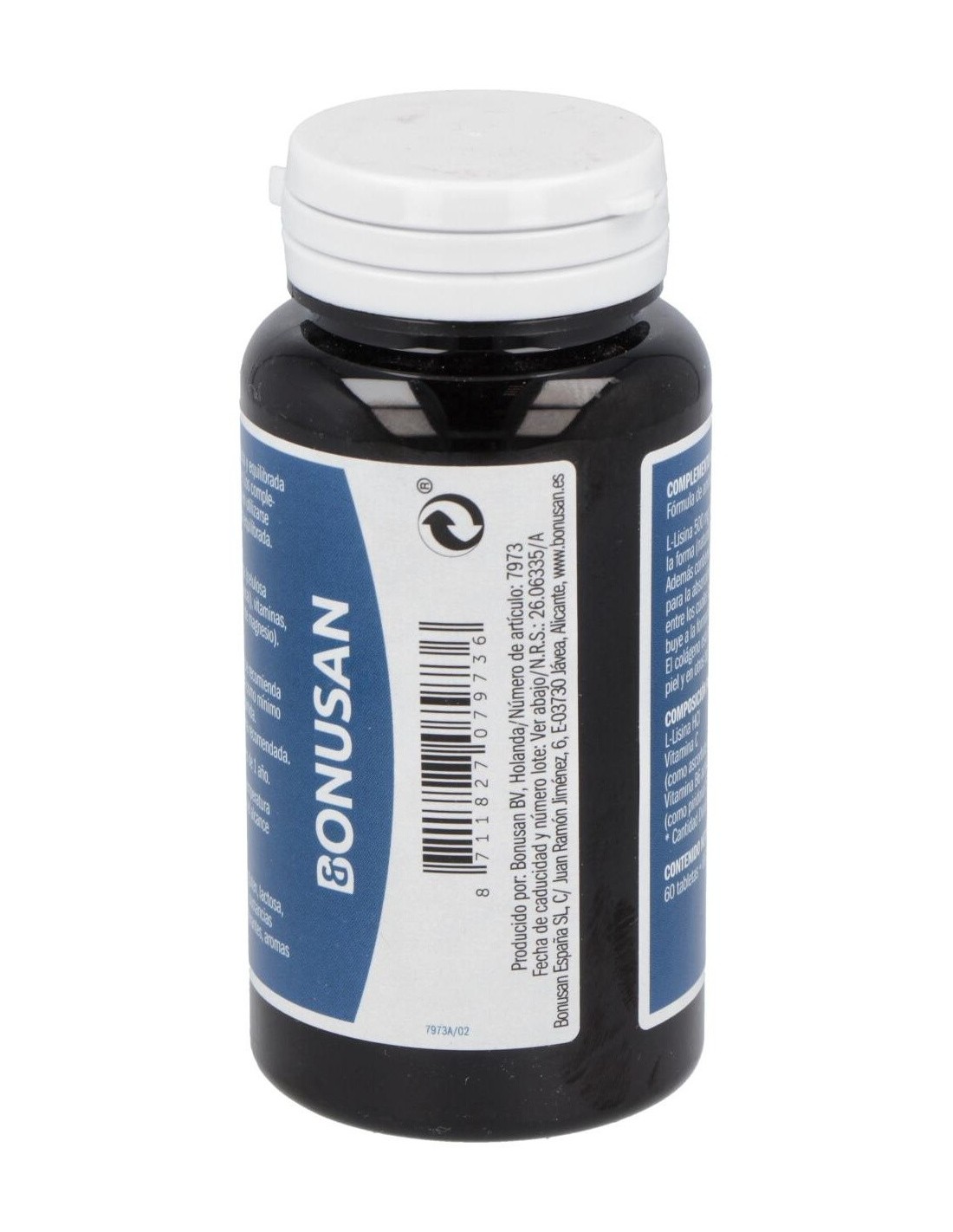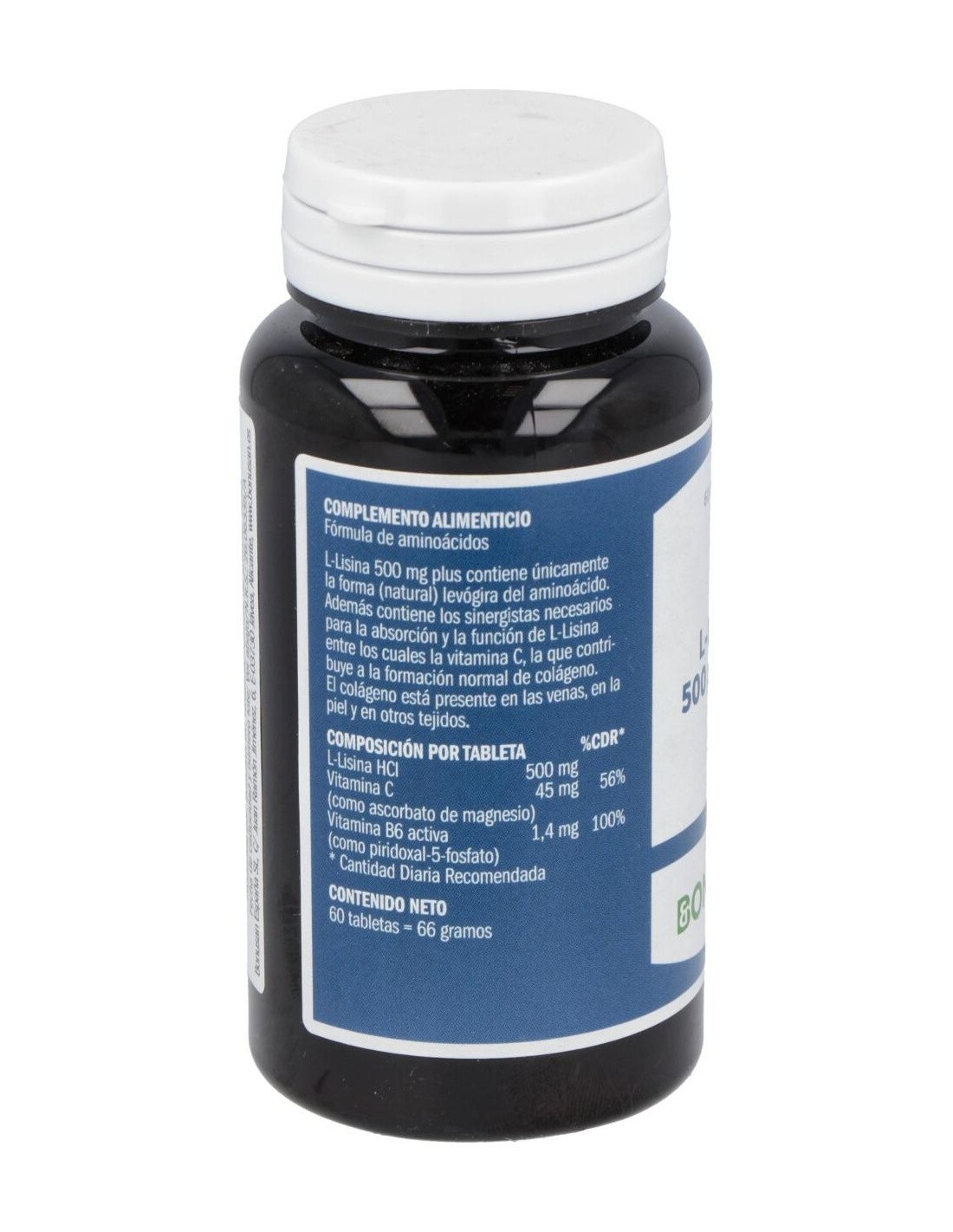 Complemento alimenticio que ayuda en el buen funcionamiento del organismo gracias a las vitaminas y minerales como L-Lisina Plus. Bonusan elabora L-Lisina Plus de forma que su absorción sea mejor para que su efecto sea mayor. L-Lisina de Bonusan es un aminoácido esencial, especialmente para profesionales del deporte y vegetarianos. L-Lisina es una sustancia importante para la producción de colágeno. Los vasos sanguíneos, la piel y otros tejidos contienen colágeno. Elaborado con L-Lisina-HCI, vitamina C (como ascorbato de magnesio), vitamina B6 (piridoxina HCl), magnesio (como ascorbato).