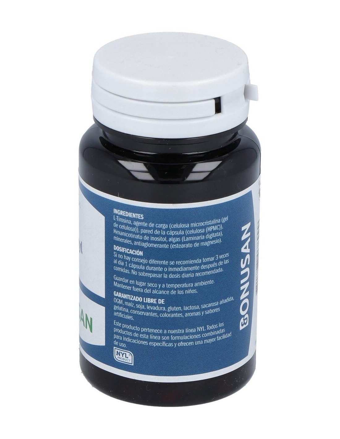 Tirosina, pared de la cápsula (hidroxipropilmetilcelulosa), agente de carga (celulosa microcristalina), inositolhexanicotinato, Laminaria digitata (kelp), citrato de zinc, antiaglomerante (sales magnésicas de ácidos grasos), selenio-L-metionina.