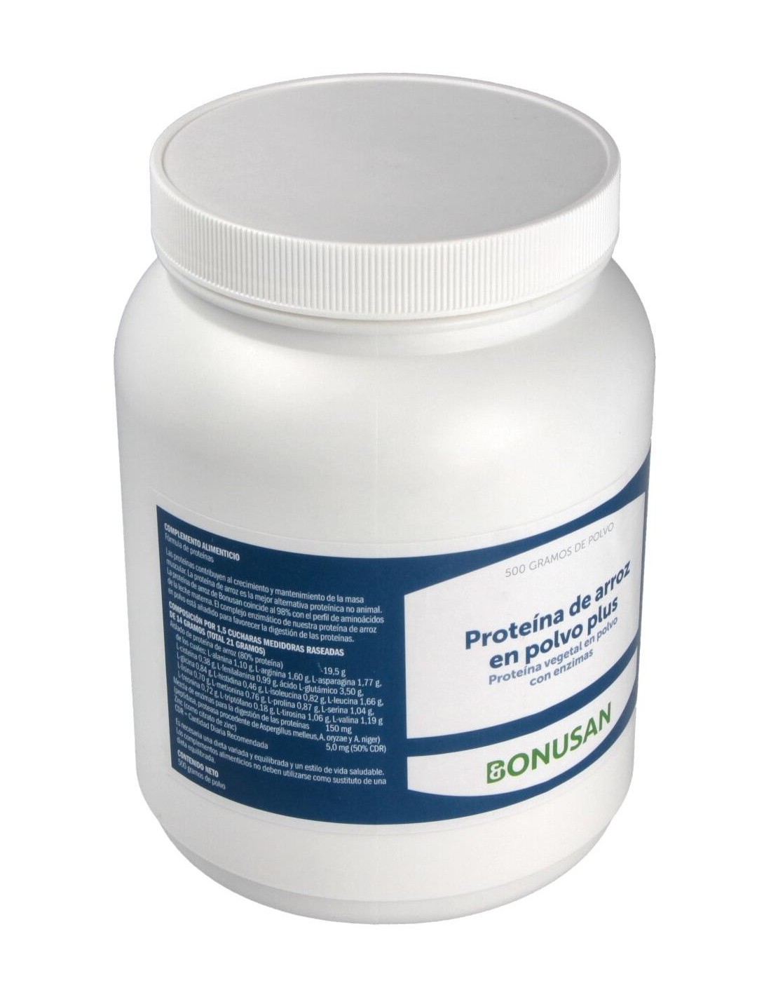 La Proteína De Arroz Plus Polvo Sabor Vainilla 500Gr. de Bonusan ofrece una alternativa vegetal para quienes buscan complementar su ingesta proteica con un producto versátil y de fácil preparación.