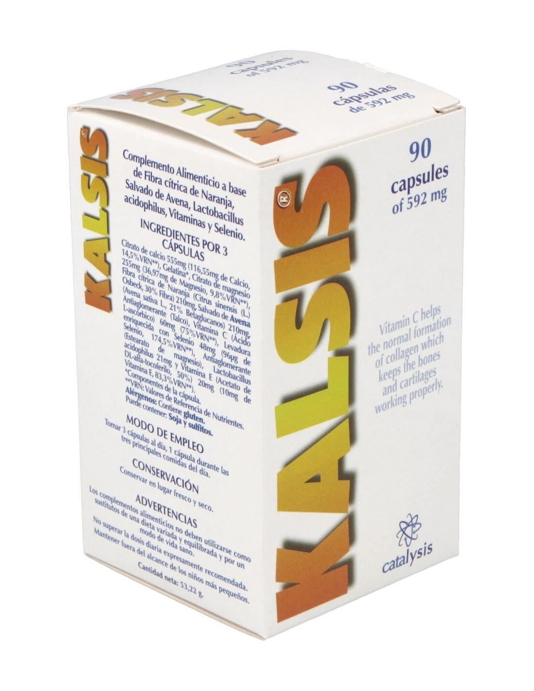 CATALYSISSuplemento alimenticio que aporta nutrientes como vitaminas y minerales. La vitamina C contribuye a la formación normal de colágeno para el funcionamiento normal de huesos y cartílagos.