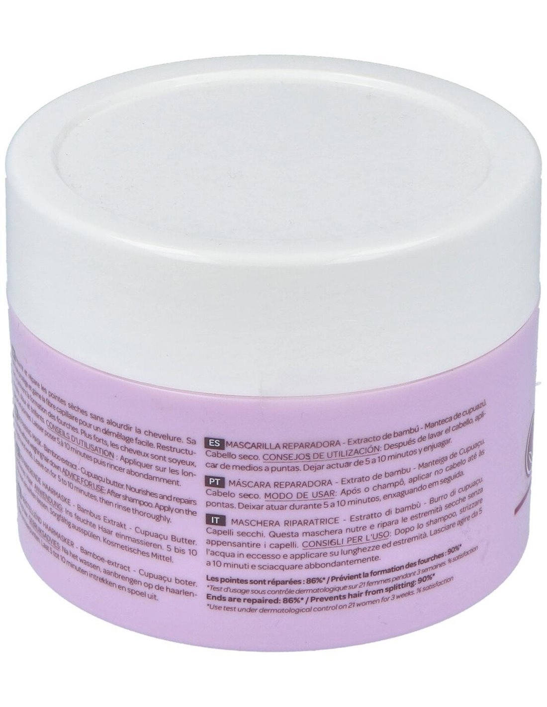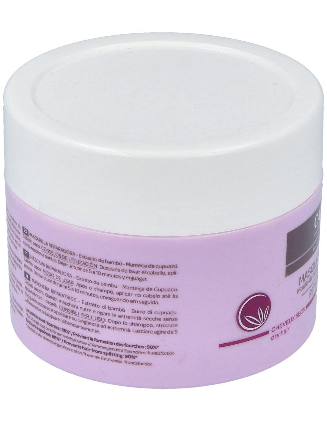 La mascarilla está elaborada con componentes seleccionados que respetan la estructura natural del cabello, contribuyendo a mantener su equilibrio. Su textura facilita una aplicación uniforme, adaptándose a diferentes tipos de cabello seco.