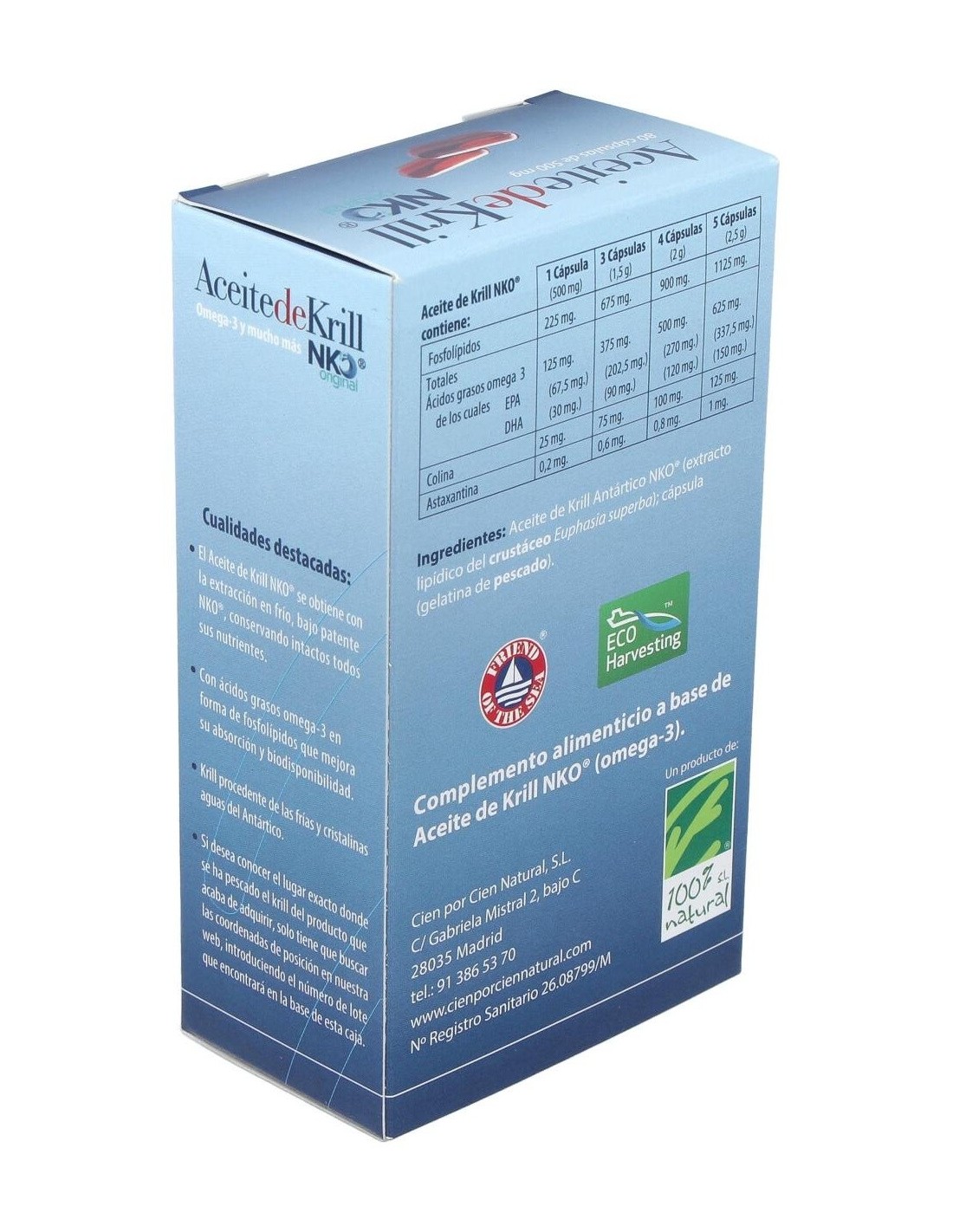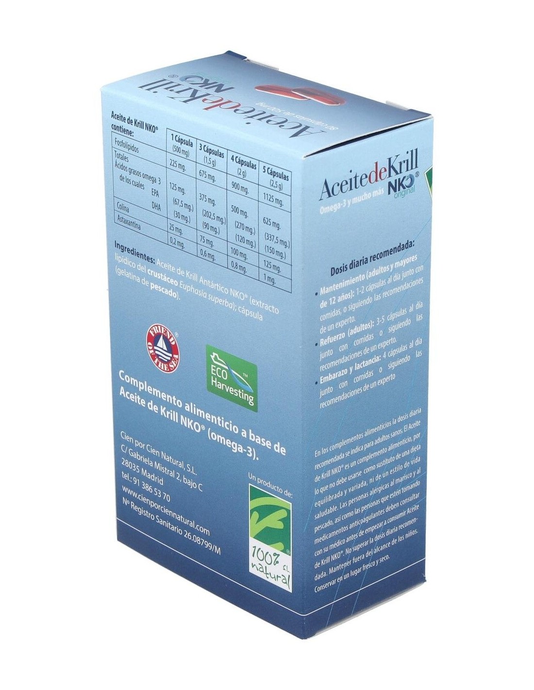 CIEN POR CIEN NATURALEl Aceite de Krill NKO® es un complemento alimenticio que contiene el aceite, extraído en frío, del krill antártico (Euphausia superba), rico en ácido