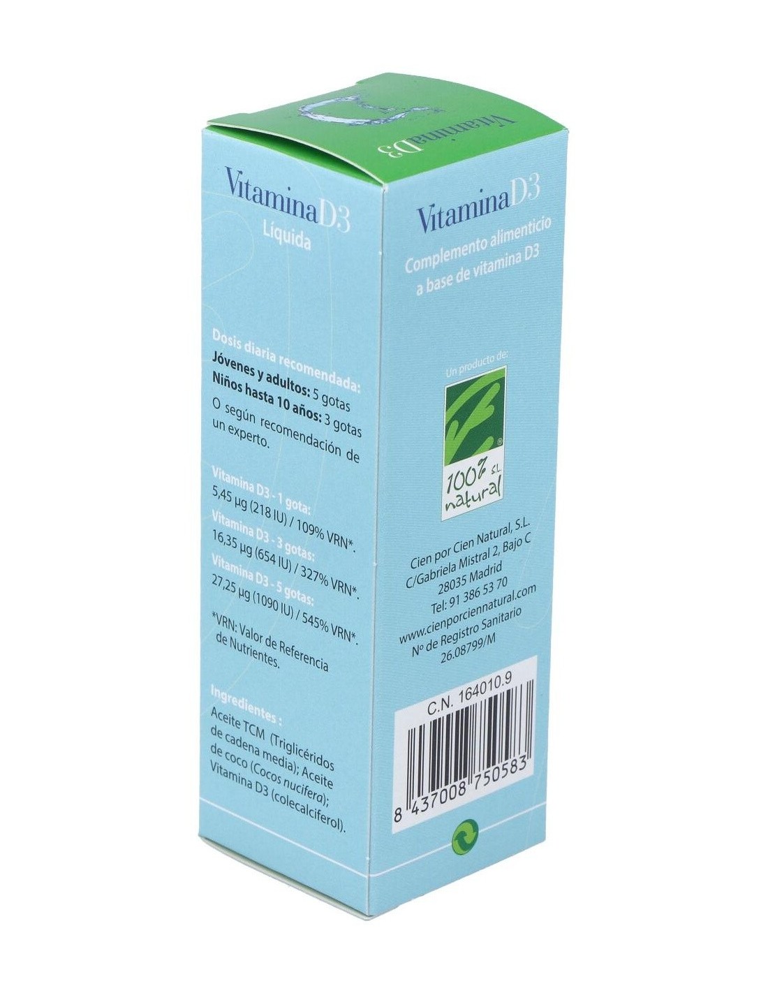 CIEN POR CIEN NATURALLa vitamina D3 (también conocida como calciferol) es una vitamina soluble en grasa que se puede obtener a través de la dieta o por una exposición adec