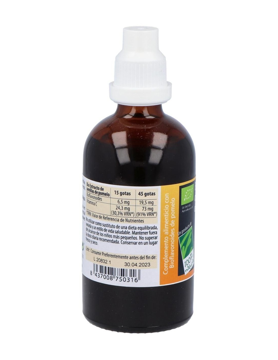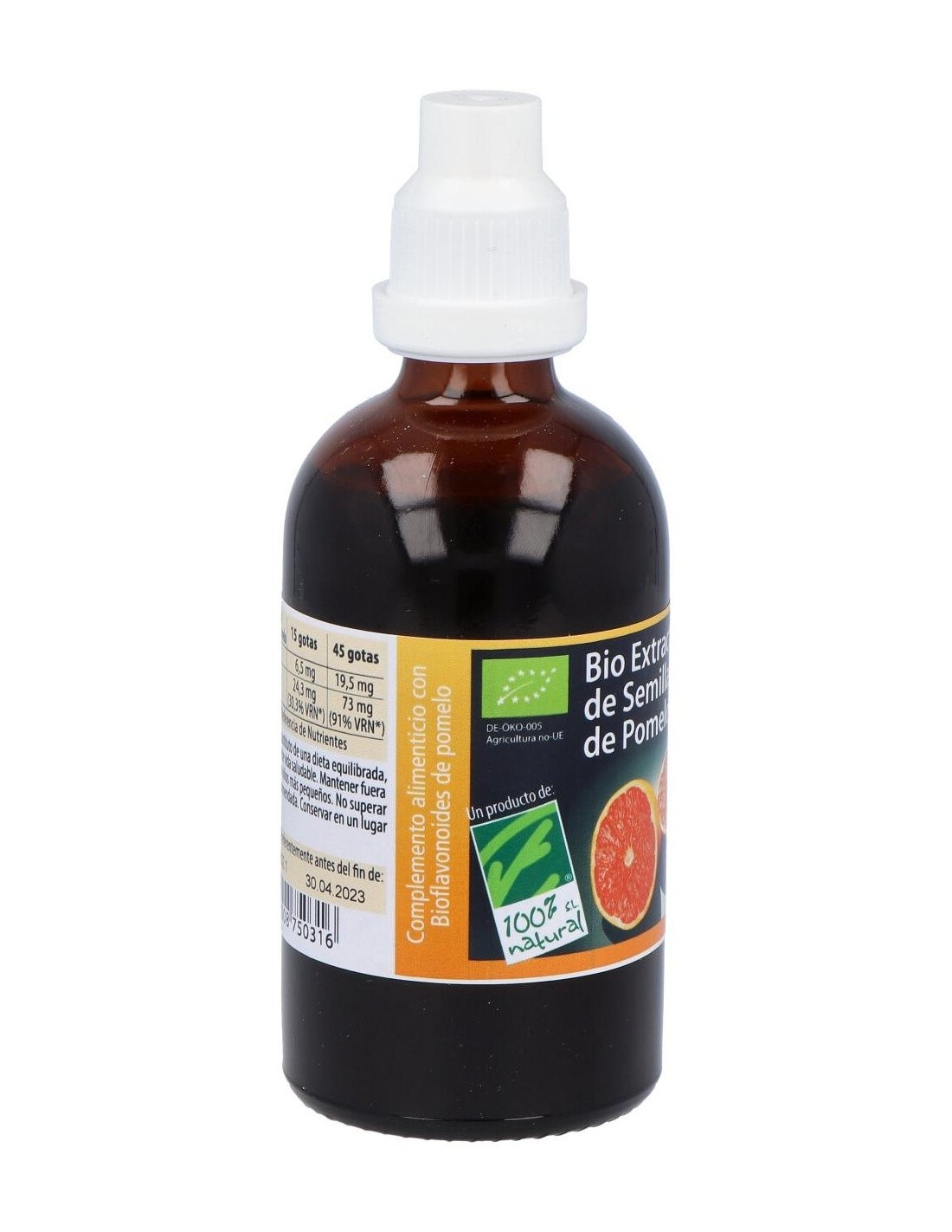 Este extracto se obtiene exclusivamente de pomelos frescos, garantizando un producto con composición natural y sin componentes químicos añadidos. Su envase está diseñado para preservar la calidad del contenido, permitiendo un uso práctico y seguro.