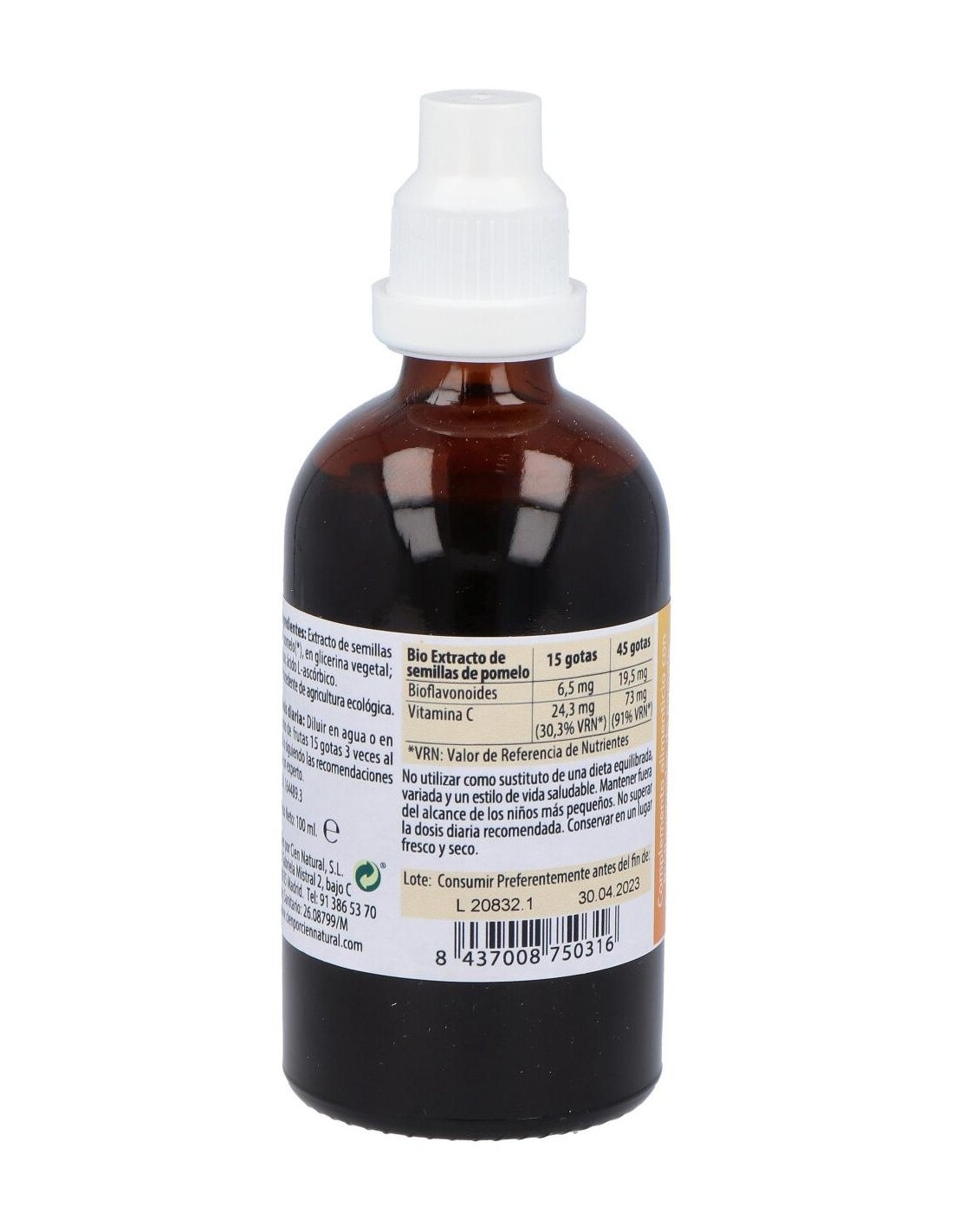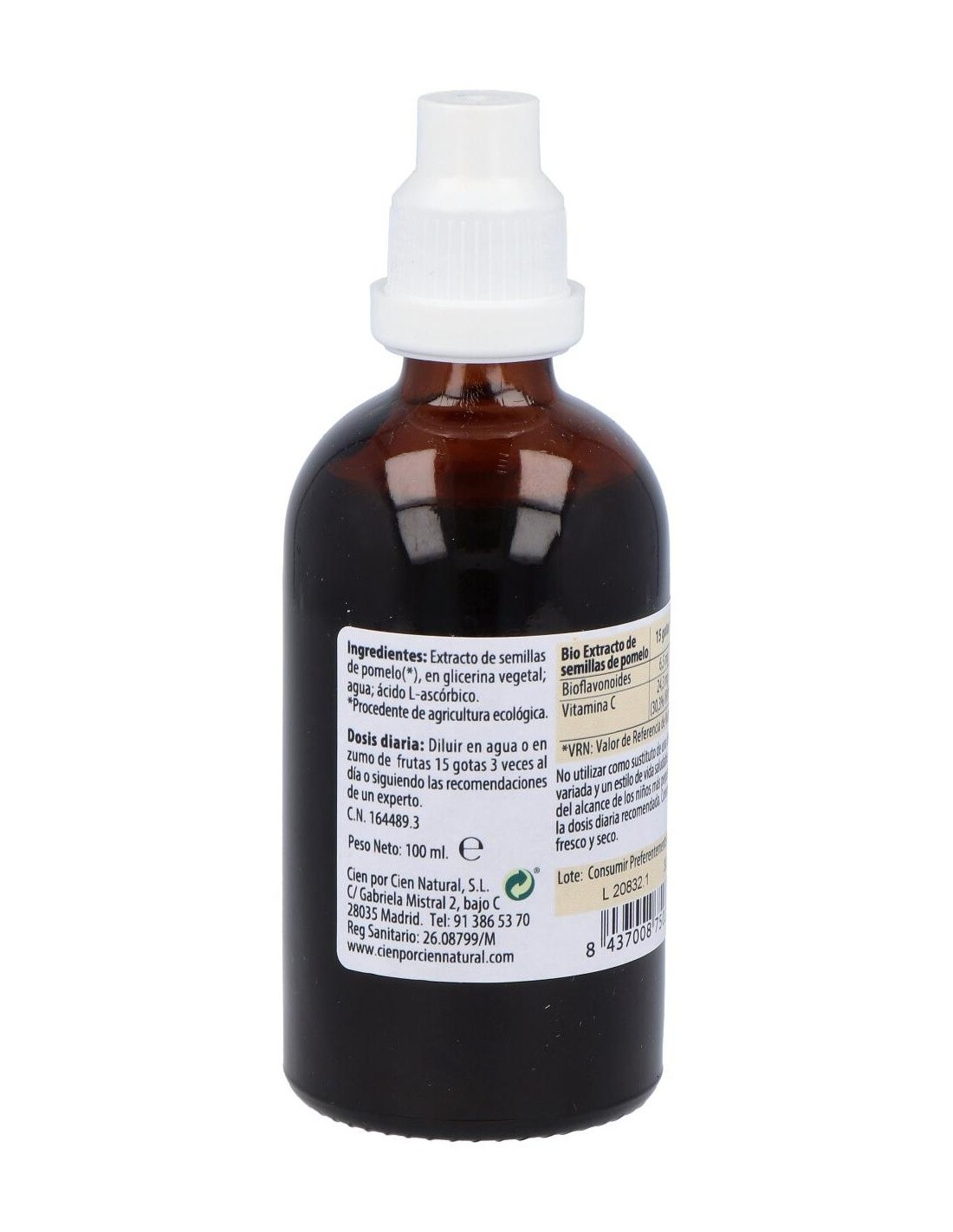 El Extracto De Pomelo 100Ml. de Cien Por Cien Natural es una opción adecuada para quienes buscan un complemento elaborado a partir de ingredientes naturales. Está diseñado para integrarse fácilmente en rutinas diarias, aportando una alternativa basada en extractos vegetales.