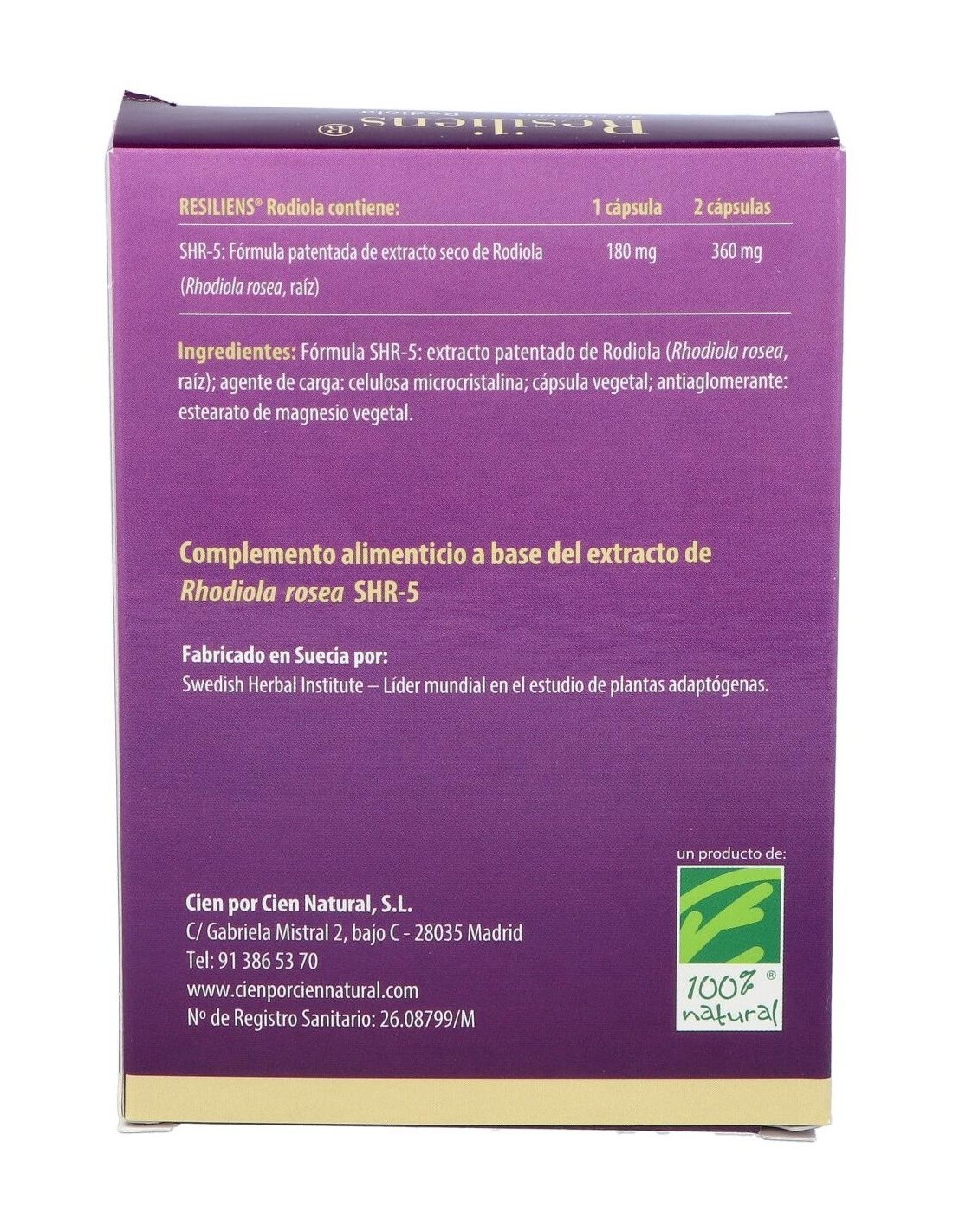 Resiliens Rodiola 40Cap. de Cien Por Cien Natural