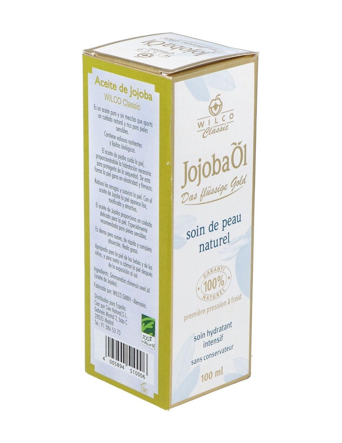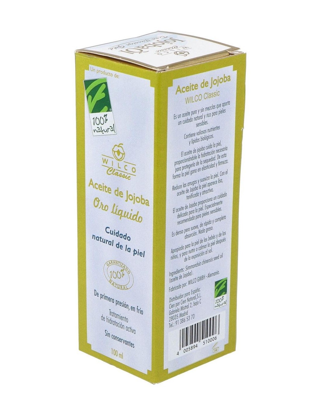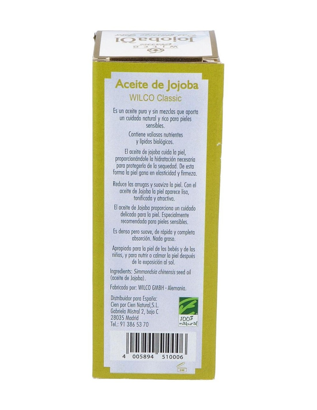 CIEN POR CIEN NATURALEl Aceite de Jojoba Wilco Classic nutre la piel, la refresca y la protege del ataque medio ambiental. Contiene lípidos y vitamina E naturales, así com