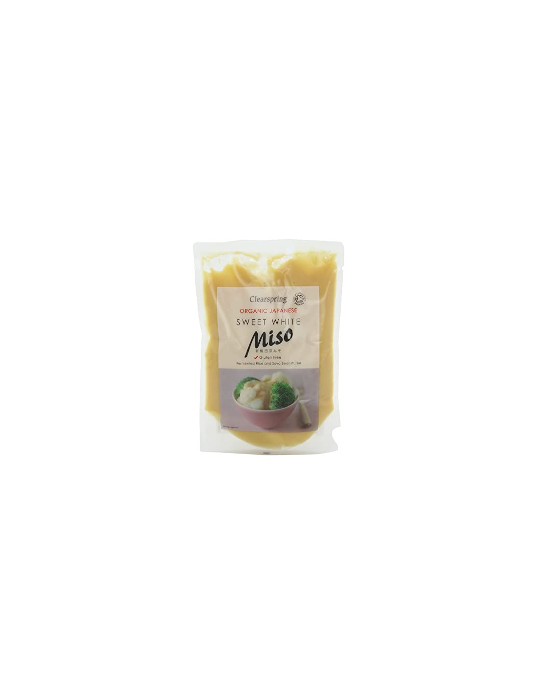 CLEARSPRINGMiso Blanco Dulce Bio de Clearspring es un alimento apto para veganos con el cual puedes condimentar y dar un sabor especial a todas tus comidas, en especial las recetas de comida asiática, sopas, vinagretas para ensaladas, puré de papas, guisos de carnes, aves, pescados o mariscos, en fin con el puedes darle un toque único a tus alimentos.