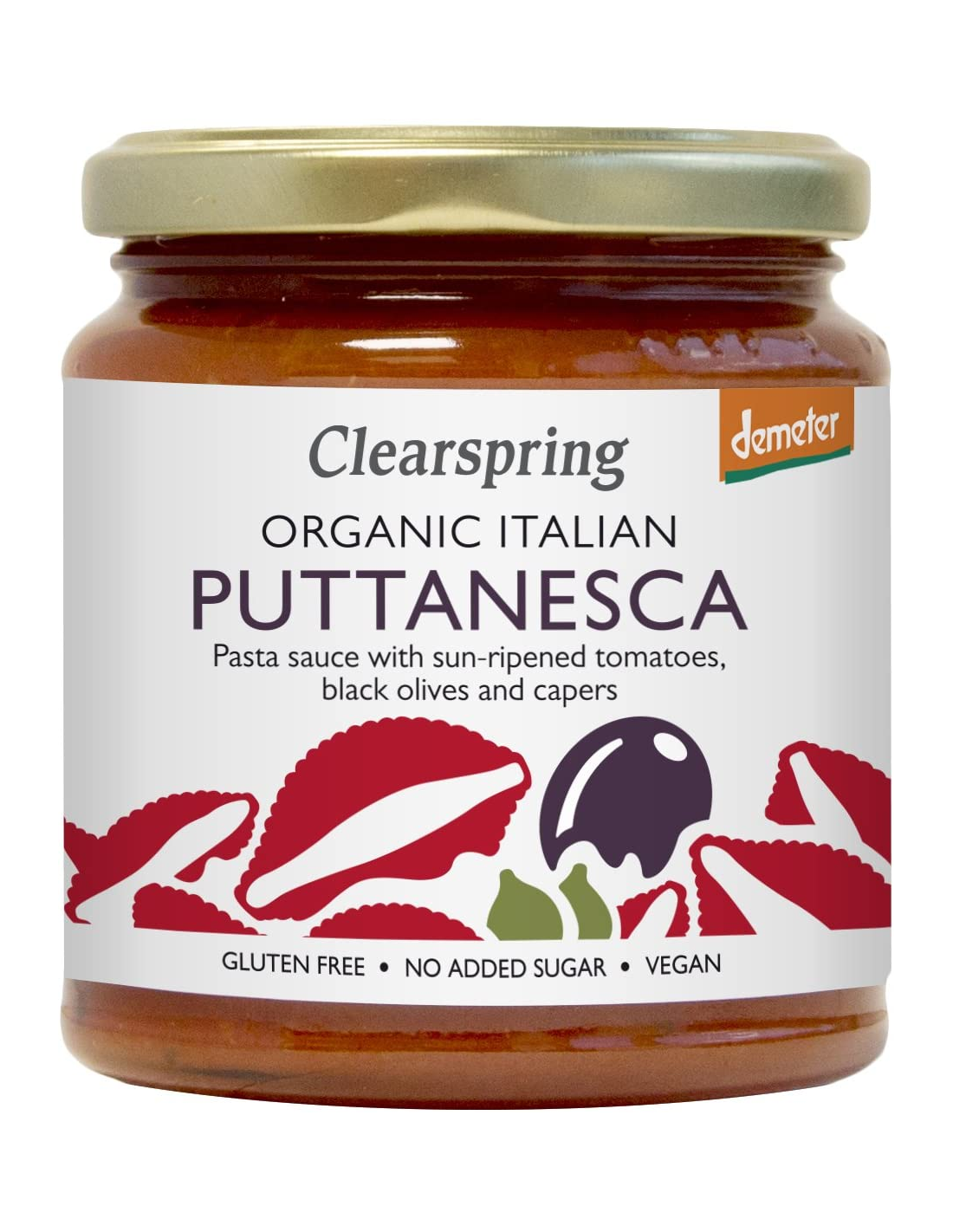 CLEARSPRINGLa Salsa Puttanesca Demeter Bio de Clearspring es una salsa natural que sigue la receta original de esta salsa tan famosa en todo el mundo, la cual tiene un sabor intenso con un ligero toque picante, pero que es la combinación perfecta para que saborees una pasta extraordinaria, lo mejor de todo es que viene lista para consumir y no tienes que esforzarte para ello.