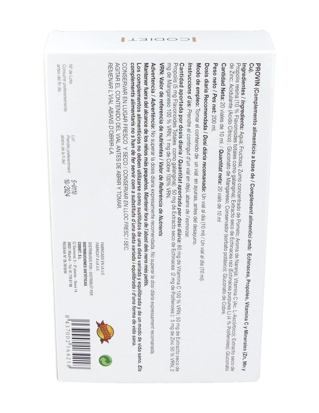 Própolis (250 Mg/Vial), Pomelo (250 Mg/Vial), Vitamina C (80 Mg/Vial), Echinacea (50 Mg/Vial), Gluconato De Zinc (44,444 Mg/Vial), Gluconatos De Cobre (7,14 Mg/Vial) Y Manganeso (16,85 Mg/Vial).