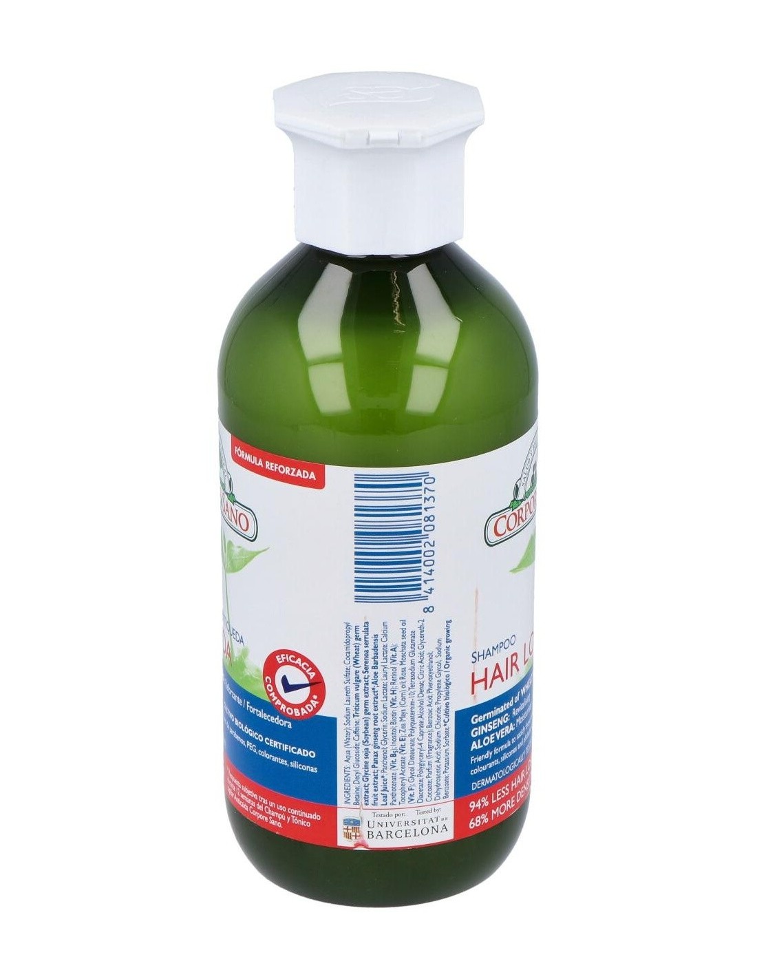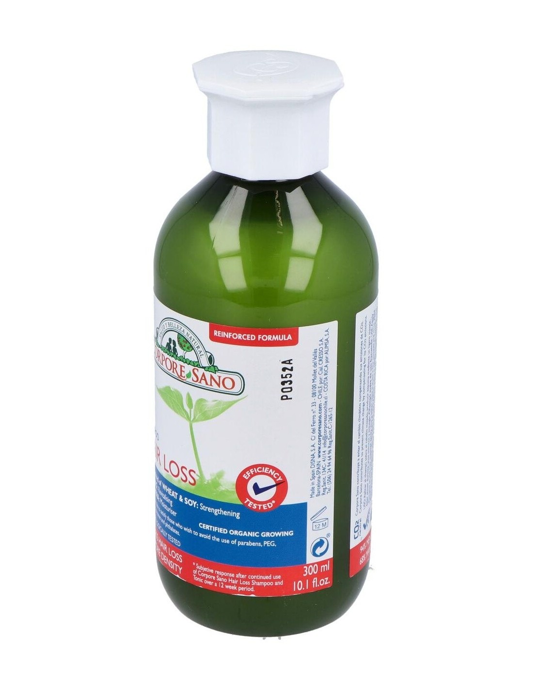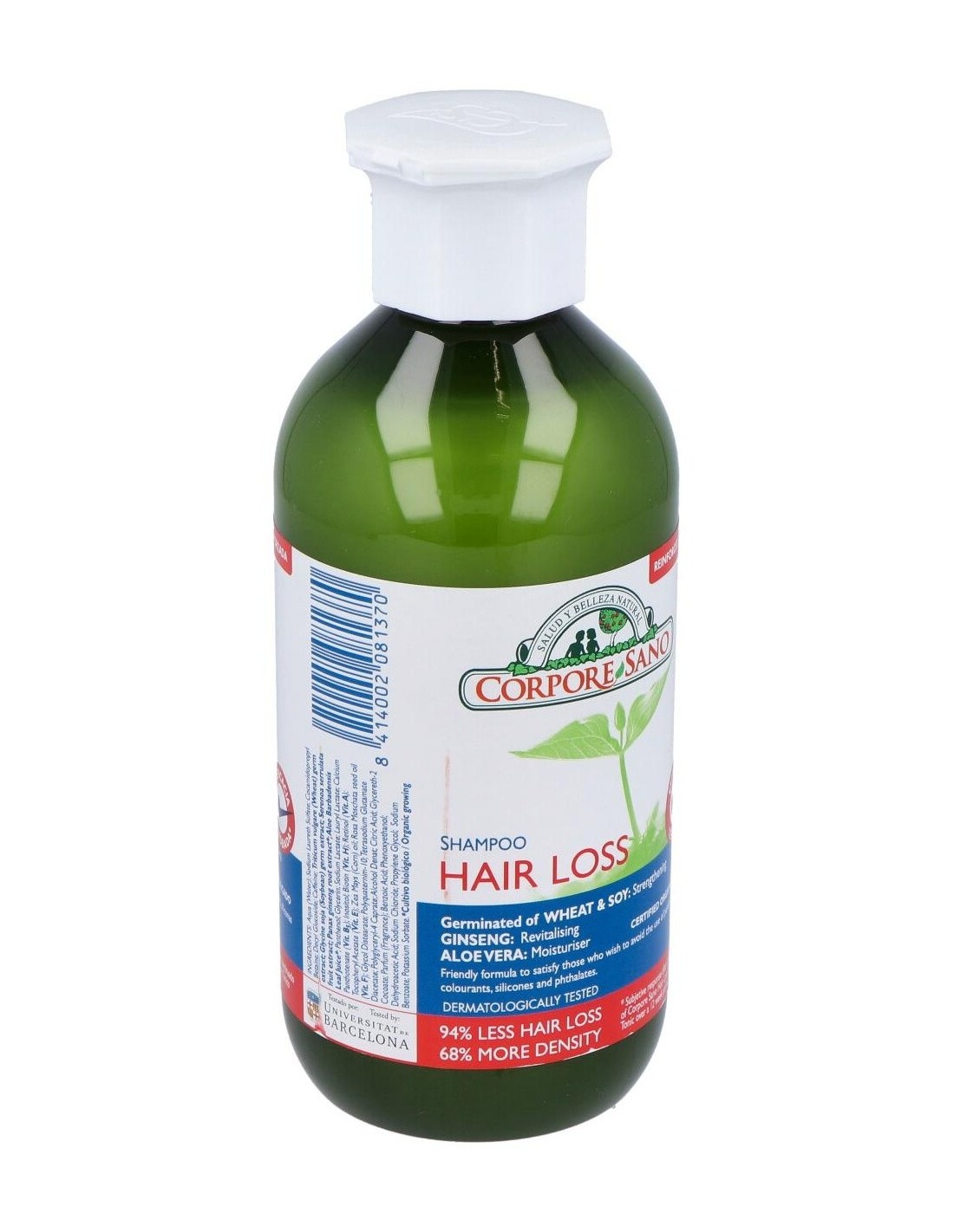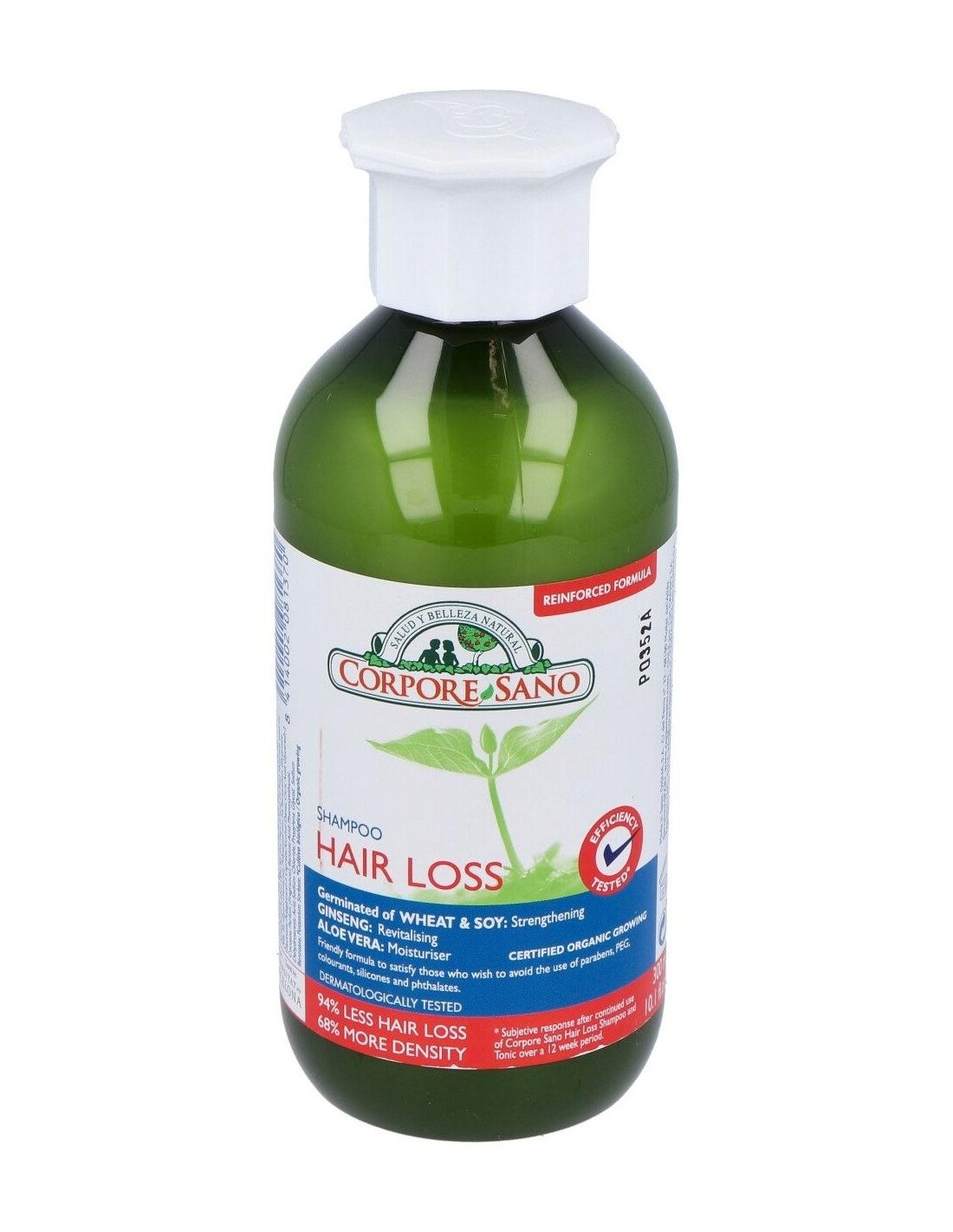 El Champú Anticaída de Corpore Sano está indicado para revitalizar el cabello y estimular su crecimiento. Contribuye a reducir la caída de cabellos.Formulado con extracto de Aloe Vera y Pro-Vitamina B5 para hidratar el cabello y protegerlo de las agresiones externas. Contiene un complejo fitoactivo obtenido de las semillas de Trigo y Soja y extracto de Ginseng, que proporciona al bulbo piloso la energía y nutrientes para fortalecer el crecimiento del cabello. Champú con ingredientes naturales y extractos BIO certificados, tiene una base lavante suave con tensoactivos de origen vegetal a la que no se le añaden colorantes, siliconas, parabenos ni PEGs.Este champú ha sido sometido a un test de eficacia. Realizado por los Laboratorios CTC Barcelona, certifica que tras un uso continuado de 6 meses del Champú y Tónico Anticaída de Corpore Sano, el 82% de los participantes presentaba resistencia a la caída y un 34% más de cabellos en fase de crecimiento.Beneficios: